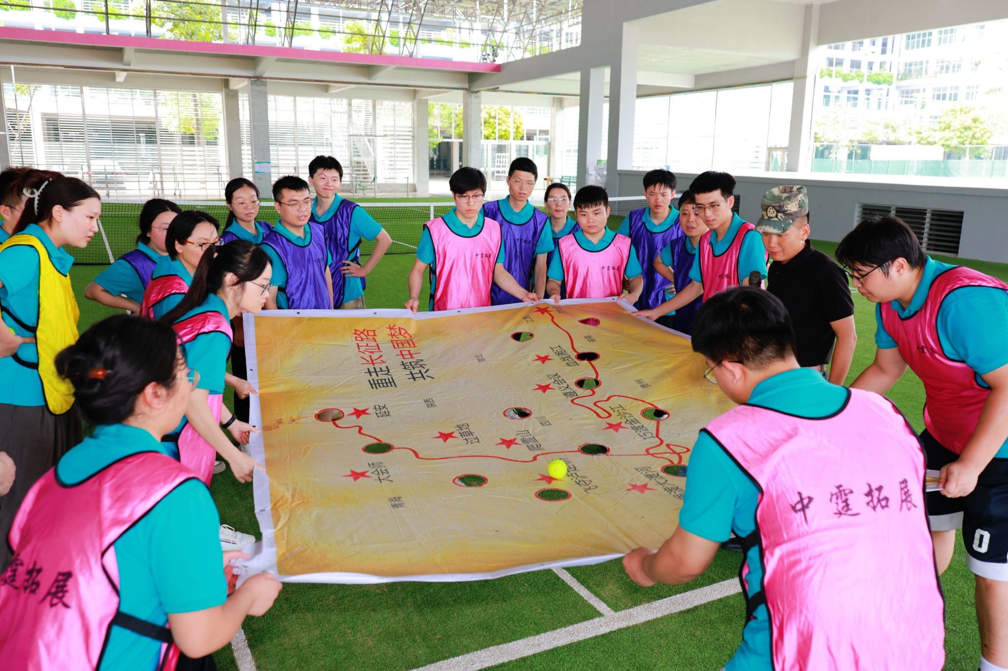 教师们通过主题通关打卡及素质拓展项目,体验团队从磨合到默契的全过程。素质拓展教练全程观察引导,强调“不落下任何一名成员”的团队理念,培养一支具有战斗力的快乐团队。