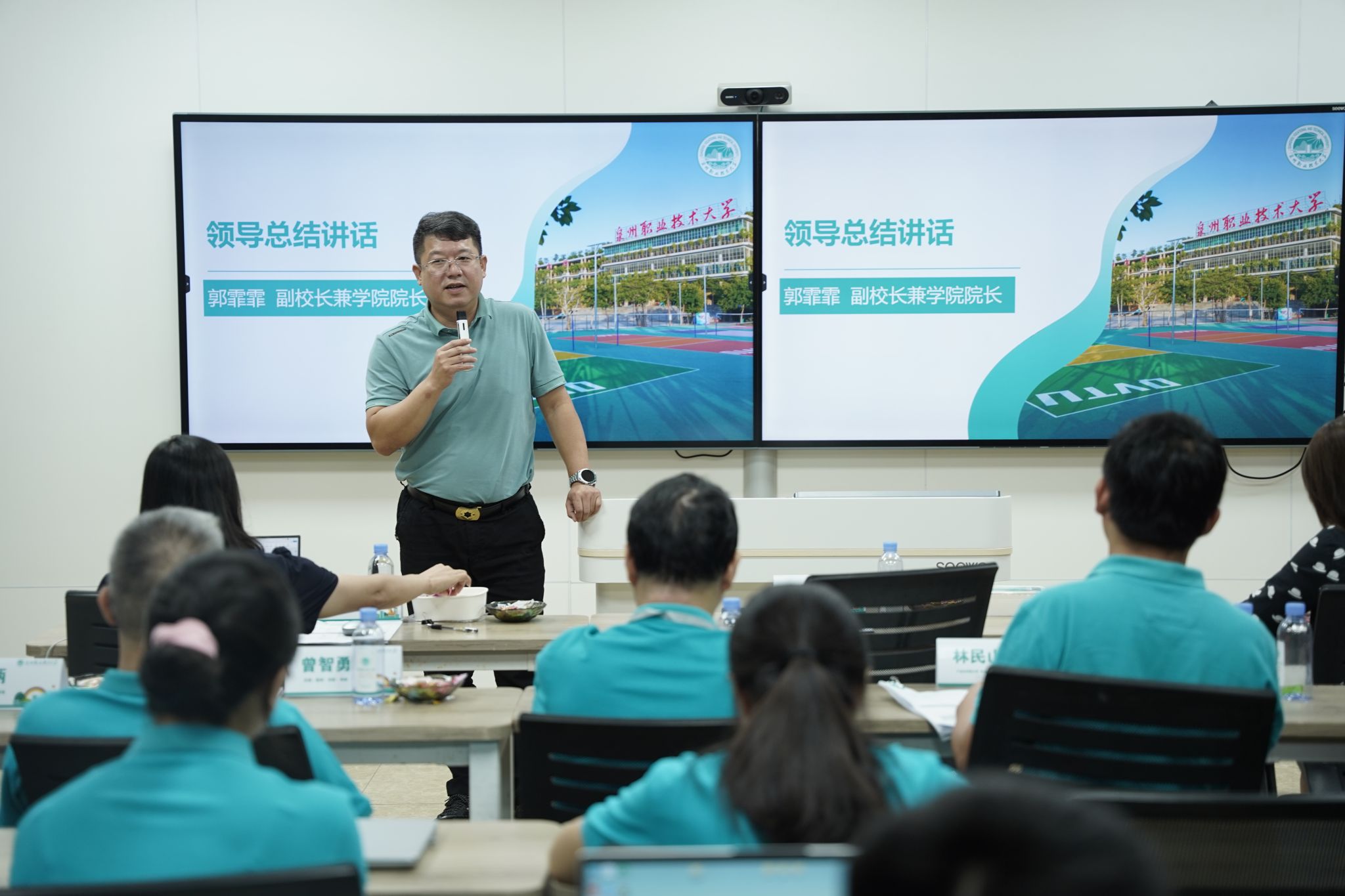 ▲ 副校长兼联合创新产业学院院长郭霏霏、副院长谢云翔、书记林江鸿为新教师们授课