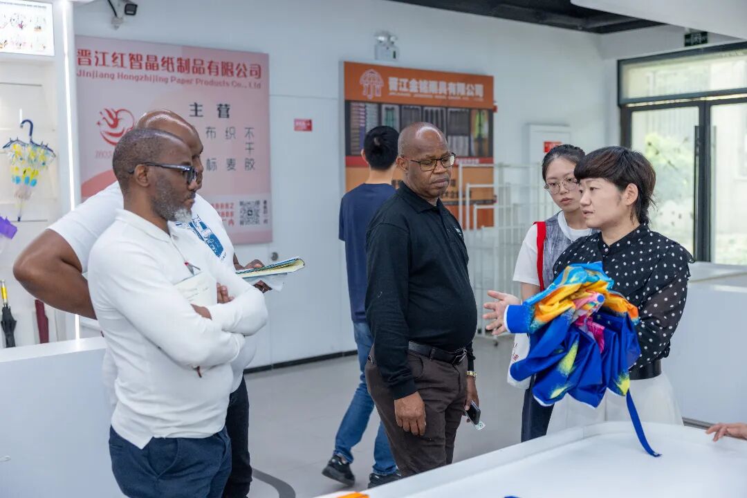 在晋江市商务局的大力支持下,当天下午,代表团实地考察东石镇伞业馆、英林镇泳装馆、盼盼食品和卡尔美等企业,进一步对接产业资源与校企合作模式。