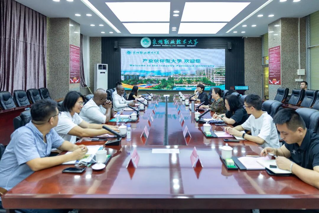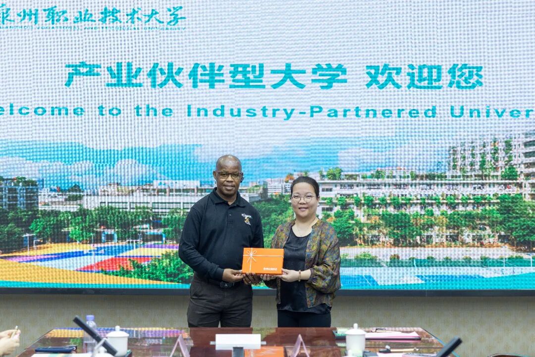 9月18日,南非批发与零售业教育培训署首席运营官Johannes Siphon Shoba、治理风险与合规高级经理Pheaga Jacob Moasa、法律服务经理Malesela Ludwick Louis Moropodi,与全国电商行指委“一带一路”合作专门委员会副秘书长顾晓然、中国文化和国际教育交流中心总经理陆嘉诚、中国文化和国际教育交流中心项目总监符小丽、南非cos项目中方理事会秘书长辛玉麟等一同参观访问泉州职业技术大学。