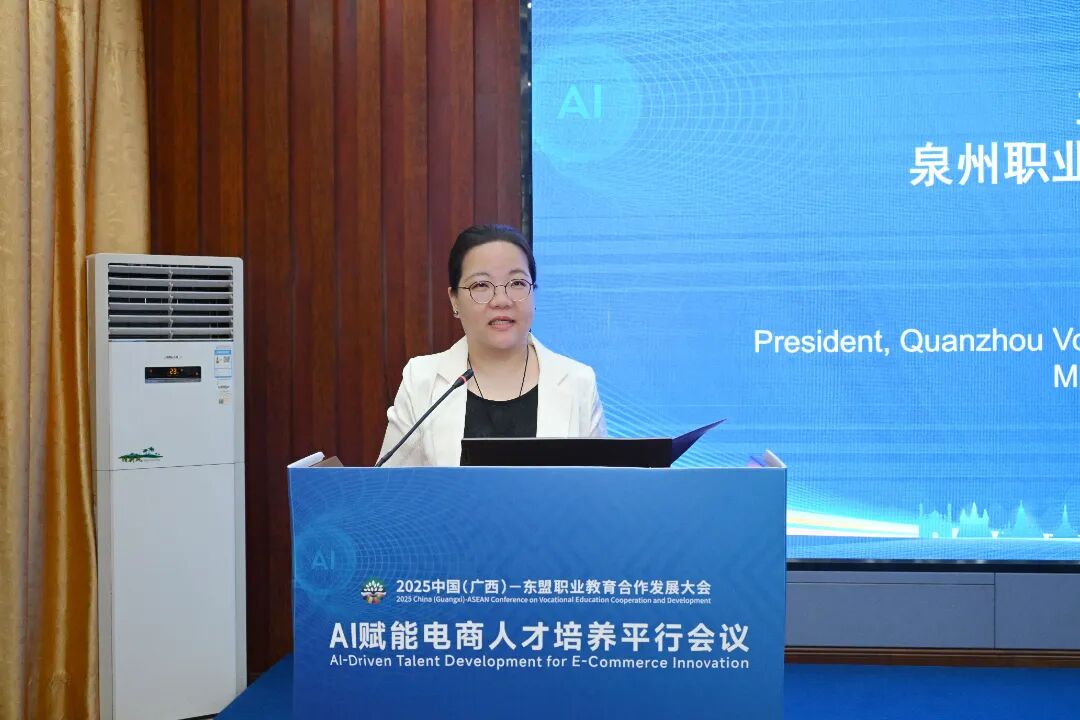 会议期间,吴滨如与多国来宾介绍学校的办学特色和特色人才培养模式,分享了泉州职业技术大学在国际合作方面的成果。她表示,泉州职业技术大学愿与东盟各国携手,共同推动电子商务、人工智能、新能源汽车及相关产业领域的人才培养与合作。