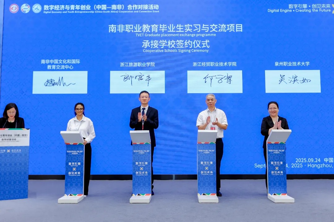 9月24日,泉州职业技术大学校长吴滨如应邀出席在杭州举行的数字经济与青年创业(中国—南非)合作对接活动,并作交流分享。活动聚焦南非产业与教育合作,发布南非职业教育系列合作项目,宣布组建“一带一路”电商谷国际合作项目南非国别工作组,搭建起中南两国在数字经济与青年人才培养领域的合作平台。活动由全国电子商务职业教育教学指导委员会和南非中国文化和国际教育交流中心共同主办。