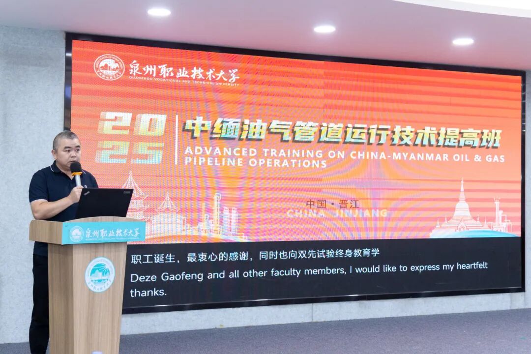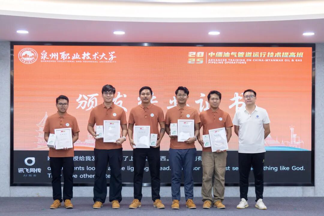 “结业不是终点,而是履职尽责的新起点。”10月14日,中缅油气管道运行技术提高班,为期近一个月的培训,在泉州职业技术大学画上圆满句号。结业仪式上,缅甸籍学员代表朱先积 (Kyuu Sai Kyi)发言表示,他们将把在泉大所学的专业知识、实操技能,转化为守护油气管道安全的实际行动。