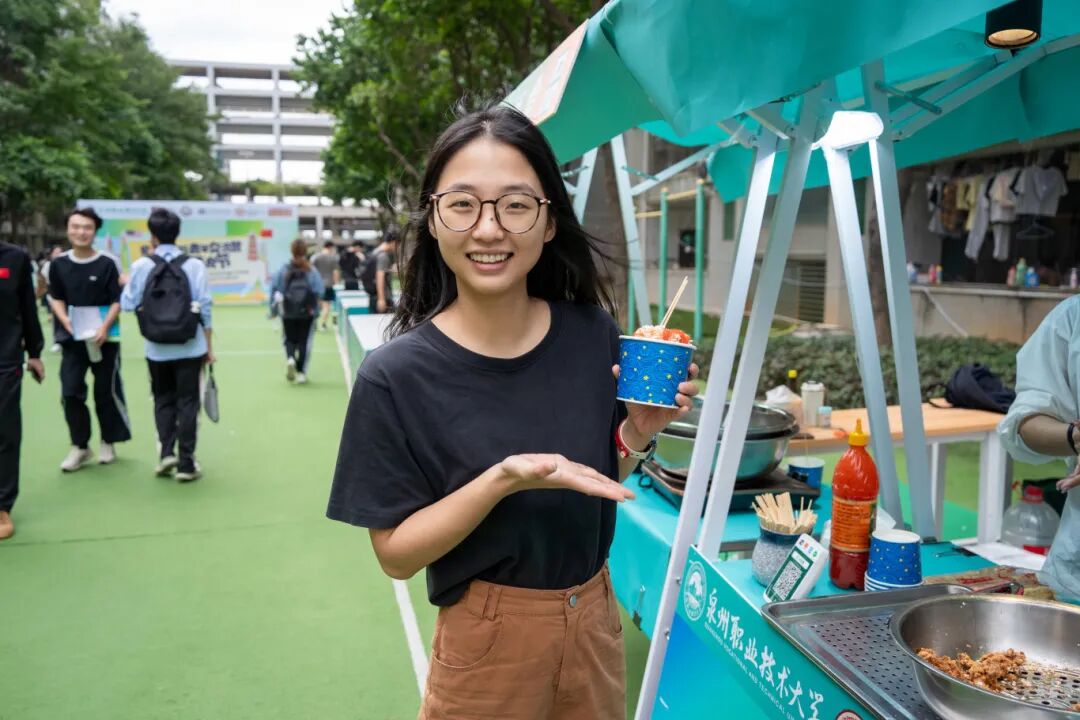 美食是本次交流的主角。现场25个美食摊位依次排开,划分为“寻味刺桐”泉州古早味区、“食贯南洋”国际风情区及“吃在泉大”青春创意坊。马来西亚的叻沙与竹筒鸡、泰国的特色风味、菲律宾的经典小吃,与泉州的马鲛羹、虾饼、润饼、四果汤等晋江美食同台飘香。来自马来西亚玛拉工艺大学沙捞越校区的陈思文讲师兴奋地分享道,“我们品尝了晋江美食,口味非常棒!”许多马来西亚、菲律宾、泰国同学在品尝润饼、四果汤等地道晋江小吃后,也连声称赞“特别喜欢”。