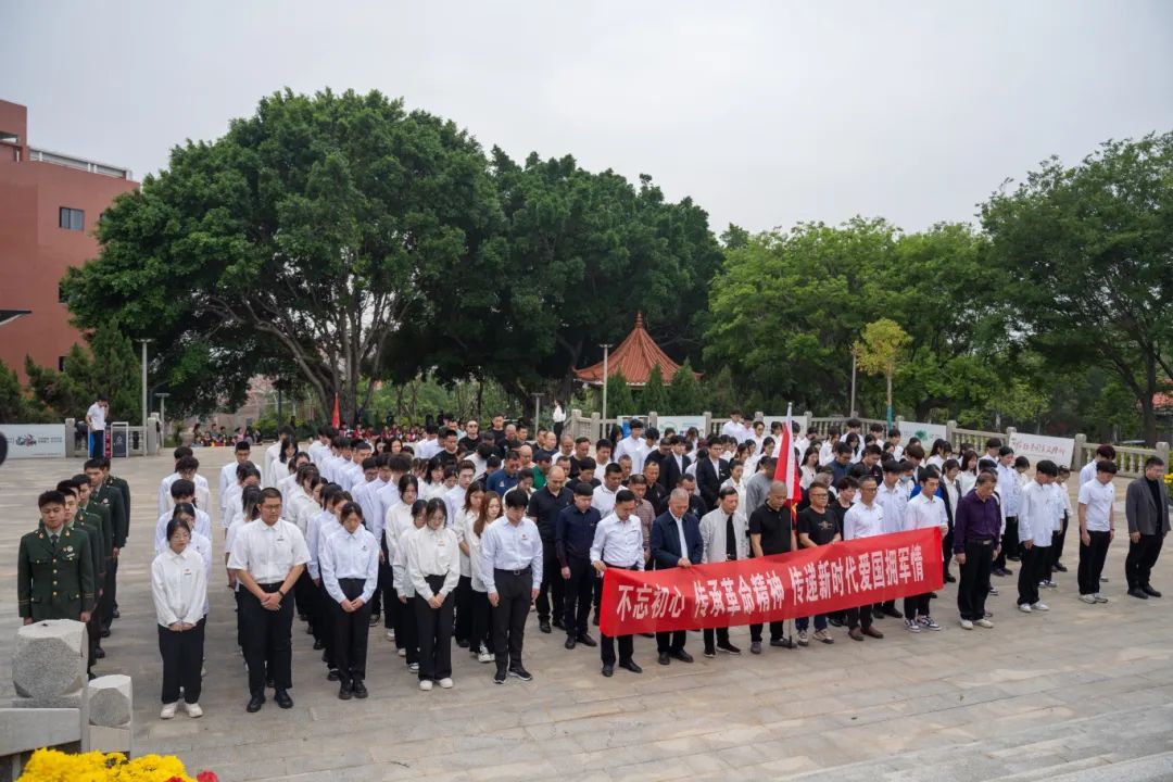 为深切缅怀革命先烈,传承革命精神,泉州职业技术大学与内坑镇武装部、晋江市爱国拥军促进会在五峰公园举行“缅怀革命先烈,汲取奋进力量”主题团日活动。学校党委书记傅志雄、校党委副书记/副校长蔡金佩,以及党委组织部、校团委等部门负责人,各基层党组织书记和师生代表共100余人参加活动。在革命烈士纪念碑前,师生肃穆而立,向革命烈士默哀。默哀结束后,由退伍学生代表向革命烈士敬献花圈。傅志雄为现场人员带来一堂微党...