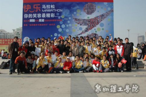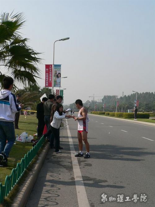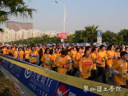 1月5日上午,2008年厦门建发国际马拉松赛在厦门会展中心鸣枪开赛,泉州理工学院再次取得出色成绩,成为参赛诸多高校中的佼佼者。此次比赛我校共派出89名运动员参加全程马拉松赛,在竞争激烈的中国大学生马拉松公开赛中,泉理工健儿勇夺团体总分第三名的好成绩,共有58名健儿成绩达到国家三级运动员标准,其中,达到国家二级运动员标准的有16个。泉理工健儿凭借顽强的意志、永不止步的精神,赛出了风格、赛出了水平,为厦门国际马拉松赛增添了一道亮丽的风景线。