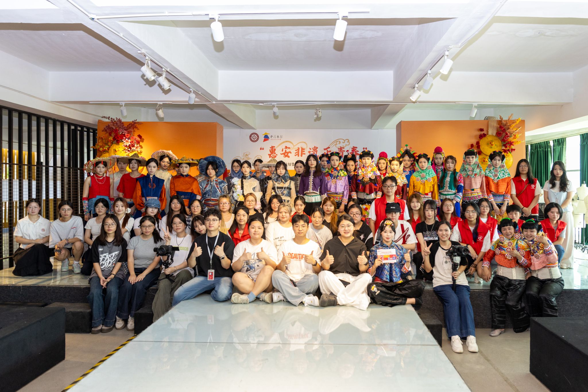 花头巾、黄斗笠、蓝短衫、宽黑裤、银腰带……这些承载着惠安海风与劳动智慧的服饰符号,不再是博物馆橱窗中的静物,而是以青春的姿态,在泉大的舞台、课堂与展区之间“活”起来。