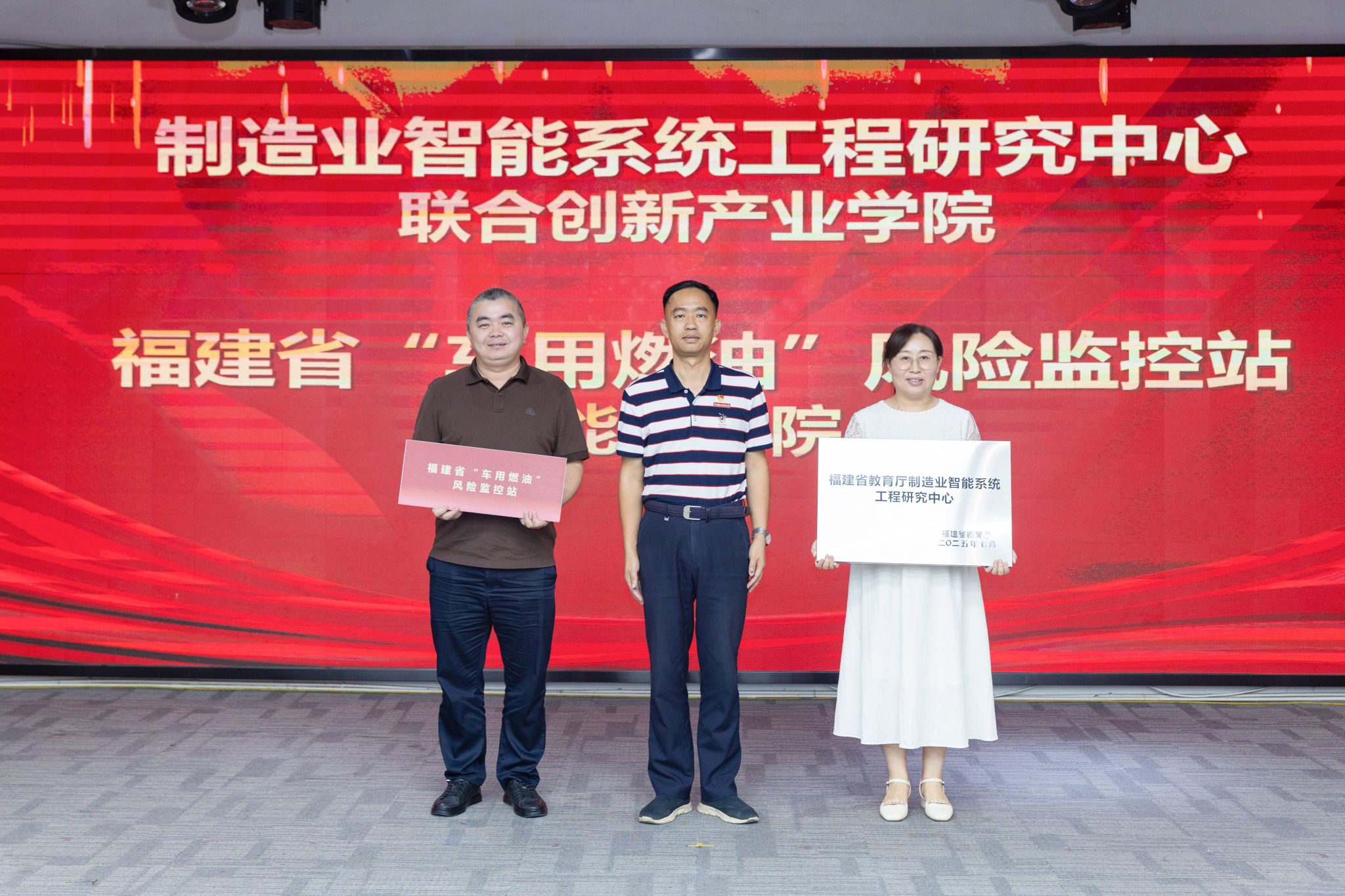 ▲ 党委书记傅志雄为制造业智能系统工程研究中心、福建省“车用燃油”风险监控站授牌