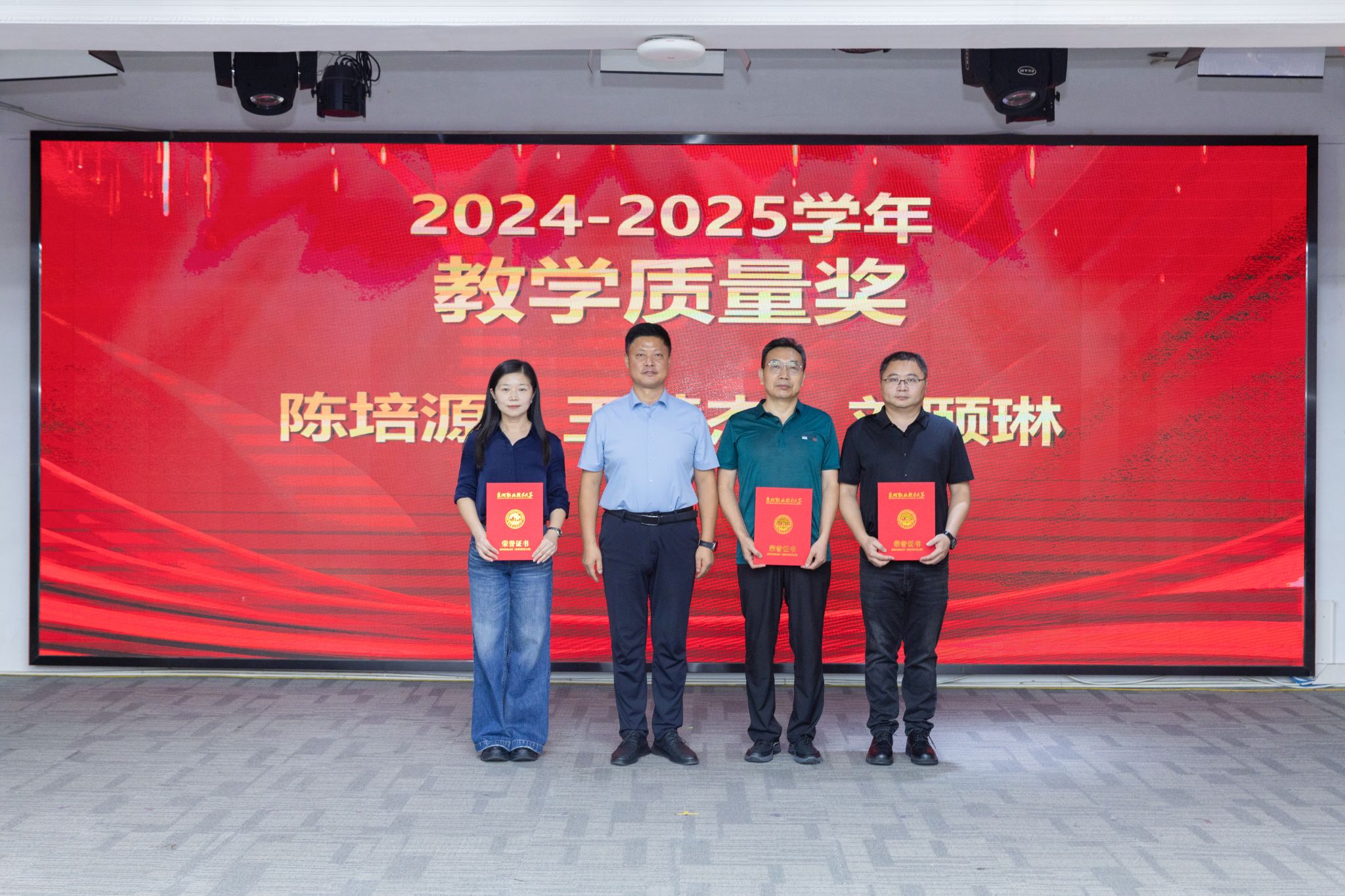▲ 副校长张建军为2024-2025学年教学质量奖获得者陈培源、王荣杰、刘颐琳颁奖