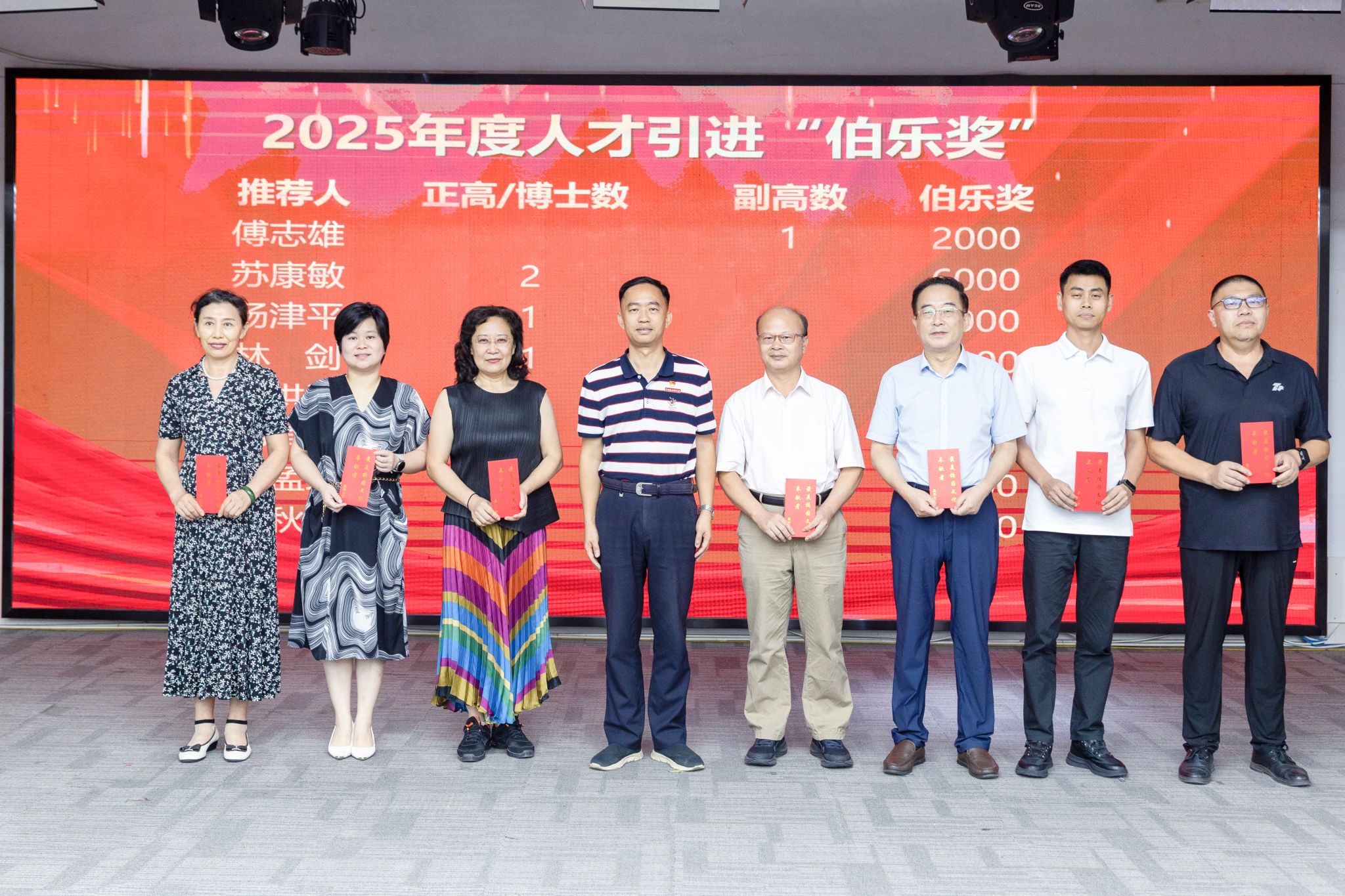 ▲ 党委书记傅志雄为获得2024、2025年度人才引进“伯乐奖”获得者颁奖
