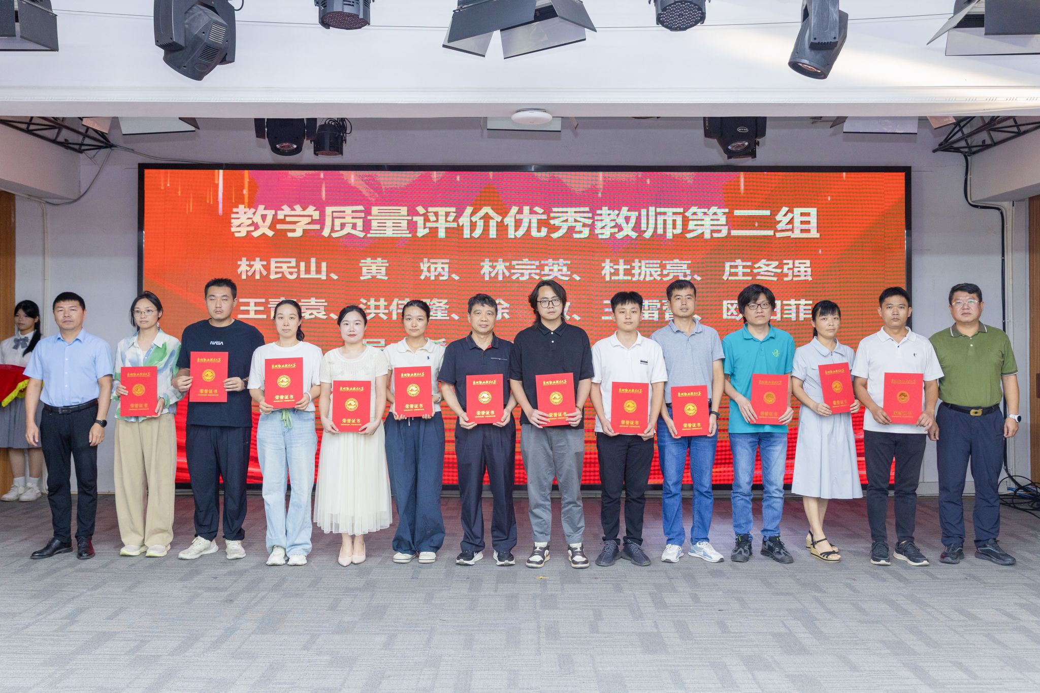 会议期间,学校举行了隆重的表彰环节,包括2024-2025学年第二学期教师课堂教学质量评价优秀教师86人、学年“教学质量奖”获得者陈培源、王荣杰、刘颐琳,以及在福建省职业院校技能大赛、世界职业院校技能大赛中获奖的师生团队。科研类奖项中,李红云、郑洁如分别获颁泉州市高层次人才创新项目与科技特派团专项授牌,联创学院与能源学院获省级平台授牌。2024、2025年度“伯乐奖”也分别授予在人才引进中作出突出贡献的教师。