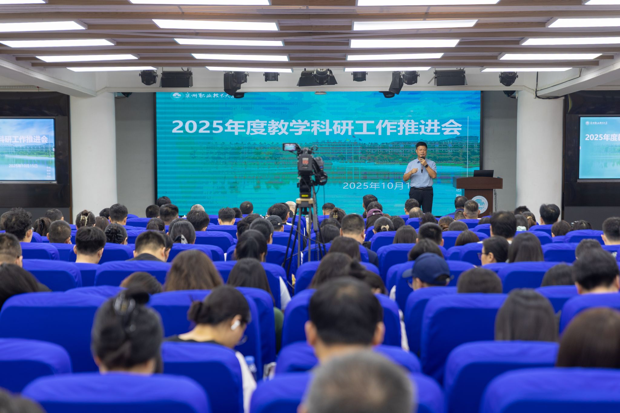 10月15日下午,泉州职业技术大学召开2025年教学科研工作推进会。会议以“以终为始,双高引领备战评估”为主题,全面总结今年以来教学科研工作进展,分析当前形势与任务,部署下一阶段重点工作。