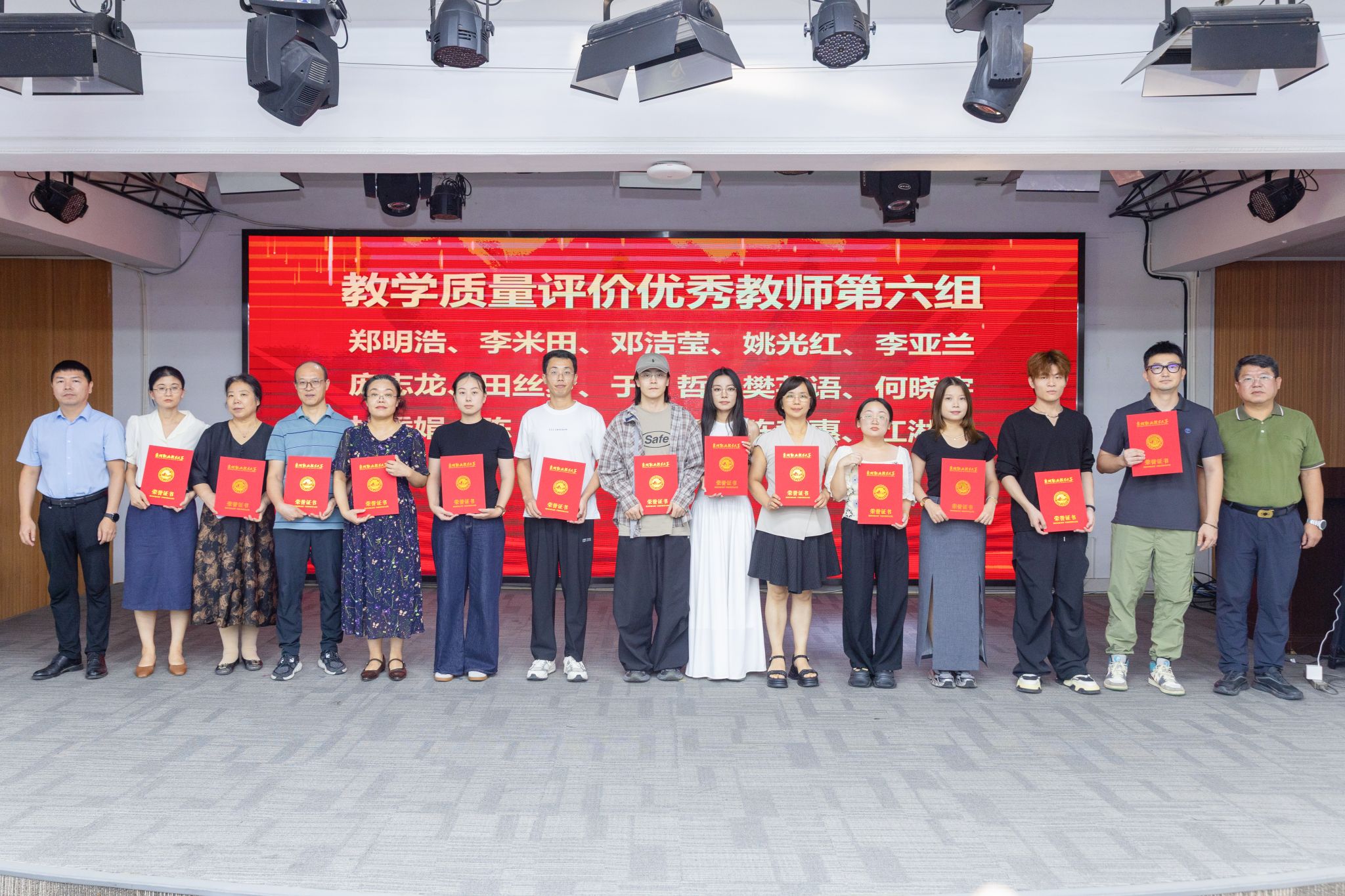 ▲ 党委副书记、副校长蔡金佩和副校长郭霏霏为教学质量评价优秀教师颁奖