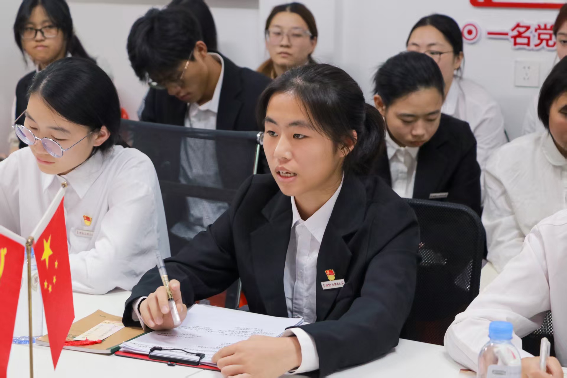 研读活动现场,学生党员纷纷分享读完《红岩家书》的感悟与收获,来自三创书院第二党支部的预备党员李欣娜分享了本人的读书感悟:“每读烈士事迹,总不禁鼻酸。车耀先烈士的遗训令我铭记:“谦、俭、劳为立身之本,骄、奢、逸为终身之戒。”这朴素的箴言,是他一生的写照,提醒我们不忘来路、不丢初心。这种精神,至今仍照亮我们前行的路。”另一位学生党员阮晓玲也分享了读书感悟:“书中“愿你用变秋天为春天的精神,把祖国的荒沙,耕种成为美丽的园林”给我深刻震撼,是蓝蒂裕对儿子的嘱托,也是对后世同志的交付。要以先烈为敬,以“功成不必在我功成,必定有我”的精神努力。”