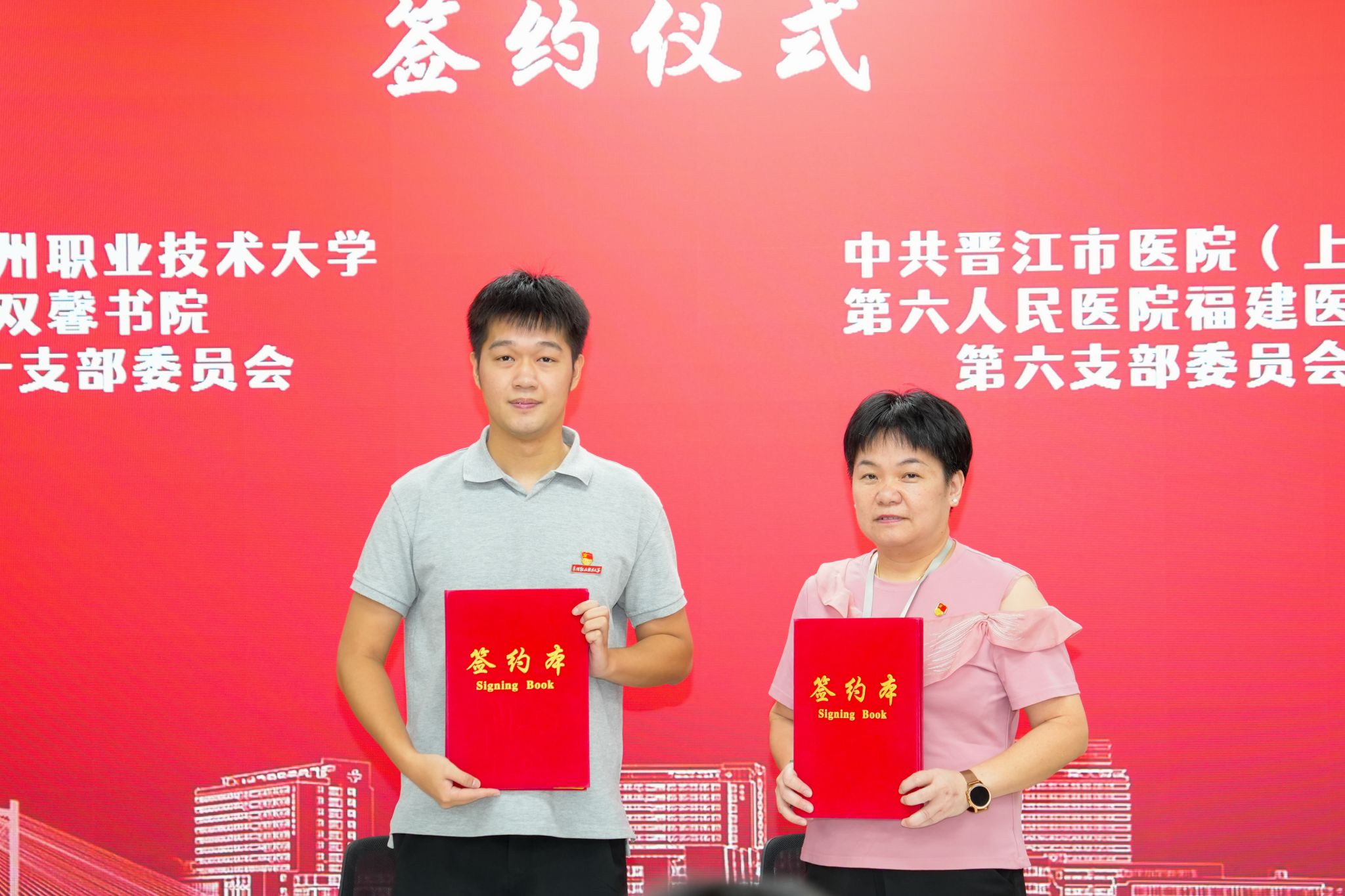 为深化基层党组织建设,推动医校协同创新与融合发展,近日,晋江市医院(上海六院福建医院)与泉州职业技术大学双馨书院举行党建共建签约暨大学生社会实践基地揭牌仪式,双方在党建引领下,携手构建“共建、共育、共享、共进”长效合作机制迈出实质性一步。