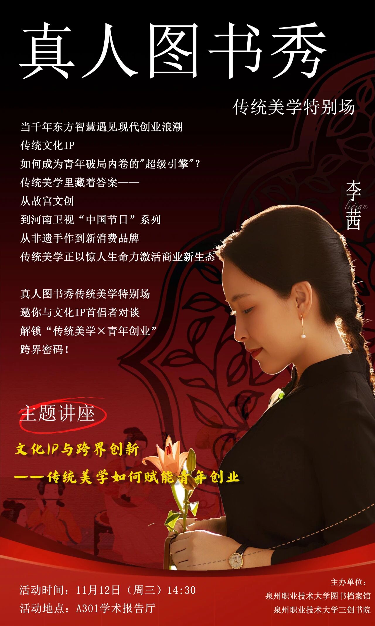 李茜老师用十余年文化实践与商业案例拆解:传统美学的“创业杠杆”:茶、香、花、书等雅事如何转化为你的文化气质与审美力学。文化IP的“造星公式”:从非遗手作到潮玩设计,如何将老手艺变成你的作品灵感?如何用传统文化元素打造个人品牌,让简历/作品集更有记忆点?跨界资源的“链接与试错法”:景区、文旅、文创的联动逻辑是什么?大学生如何低成本参与文化项目,积累跨界经验,为实习/创业打基础?