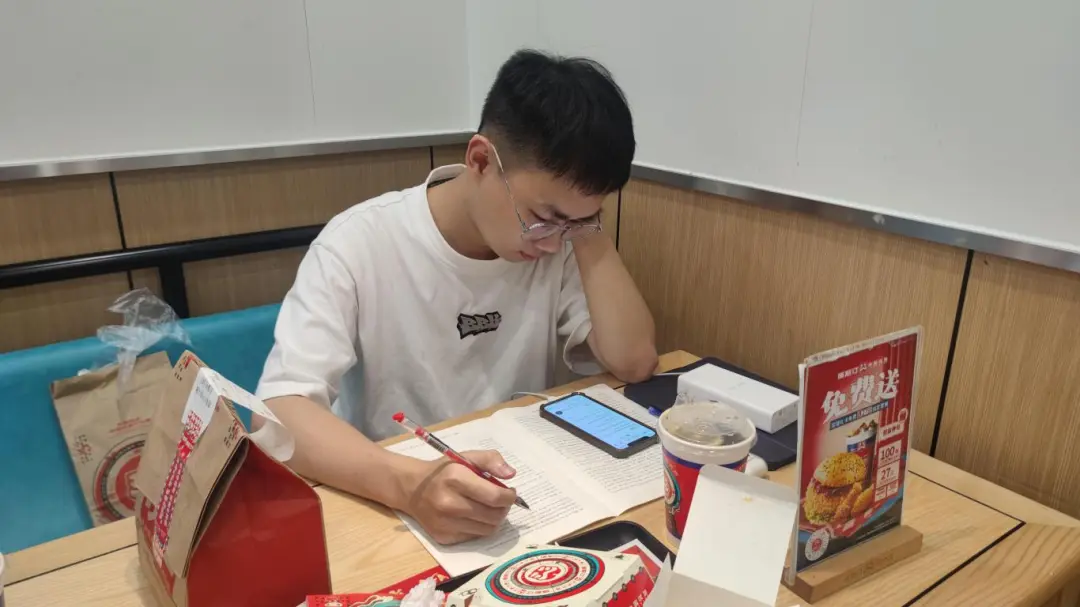 他最薄弱的是数学,报名学习周洋鑫的网课,将考研数学零基础课程刷了两遍。在困难的数学面前,他每次都很痛苦,却一直默默坚持,“只要一学数学,我就很痛苦,我就会想吃甜的东西。”