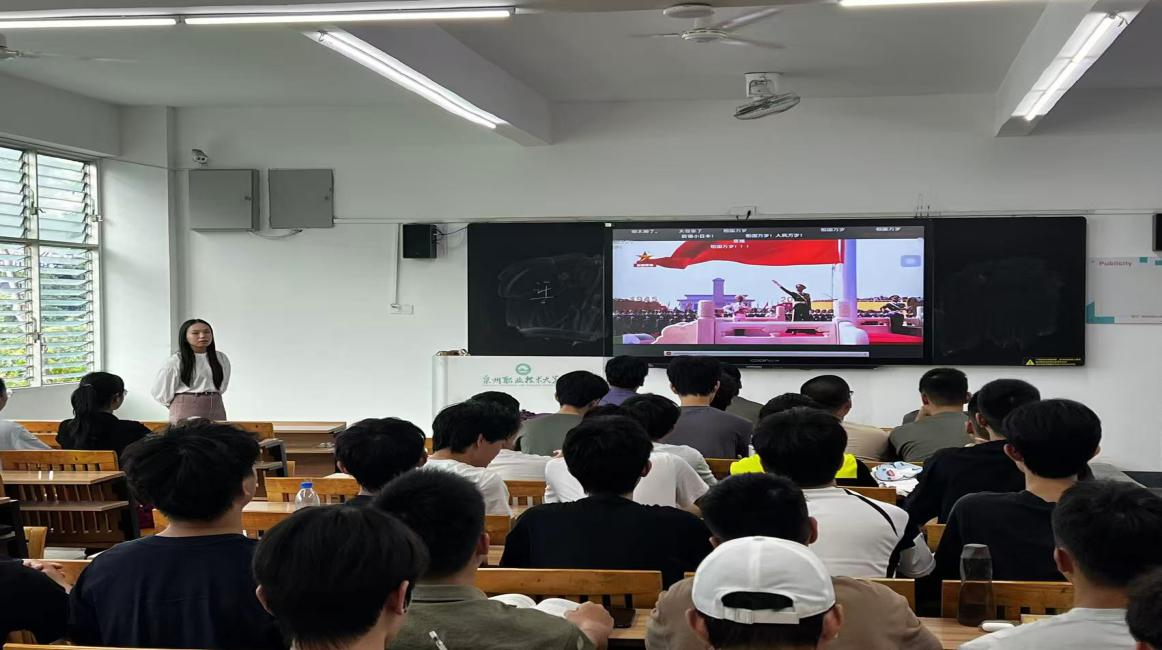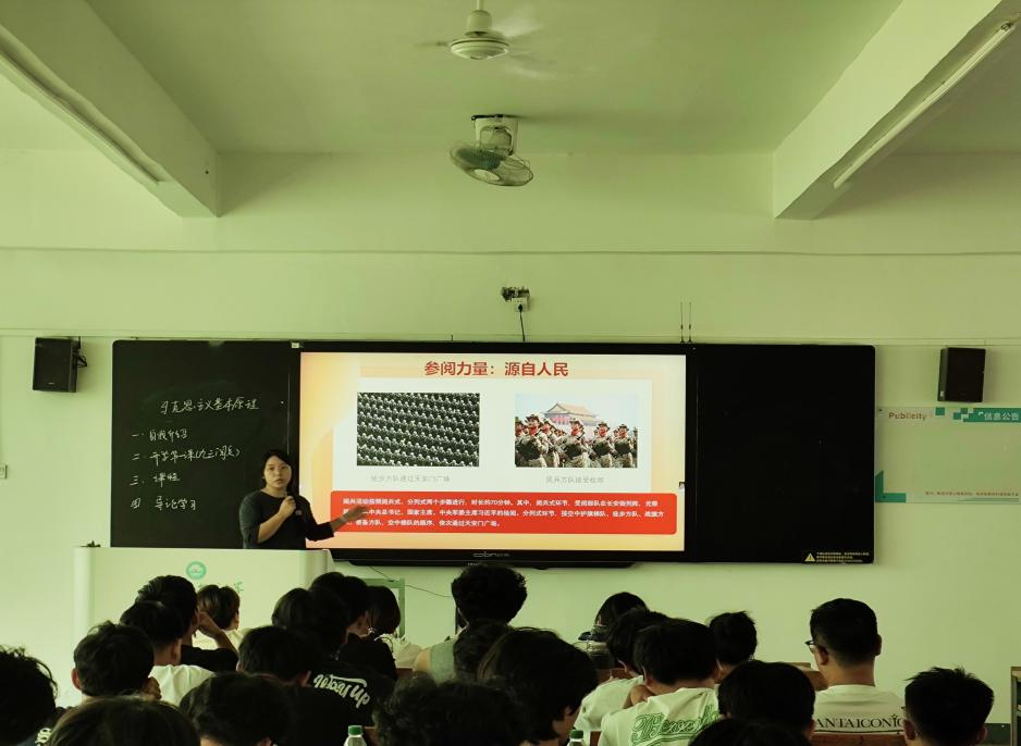 新学期,马克思主义学院第一教研中心教师精心准备,精心设计,将“九三阅兵”融入“开学第一课”教学活动,把“九三阅兵”与《马克思主义基本原理》课相结合,使青年学子牢记祖国的召唤、民族的期许,不断提高思想认识,学好专业知识,为全面建成社会主义现代化强国的目标而努力奋斗。