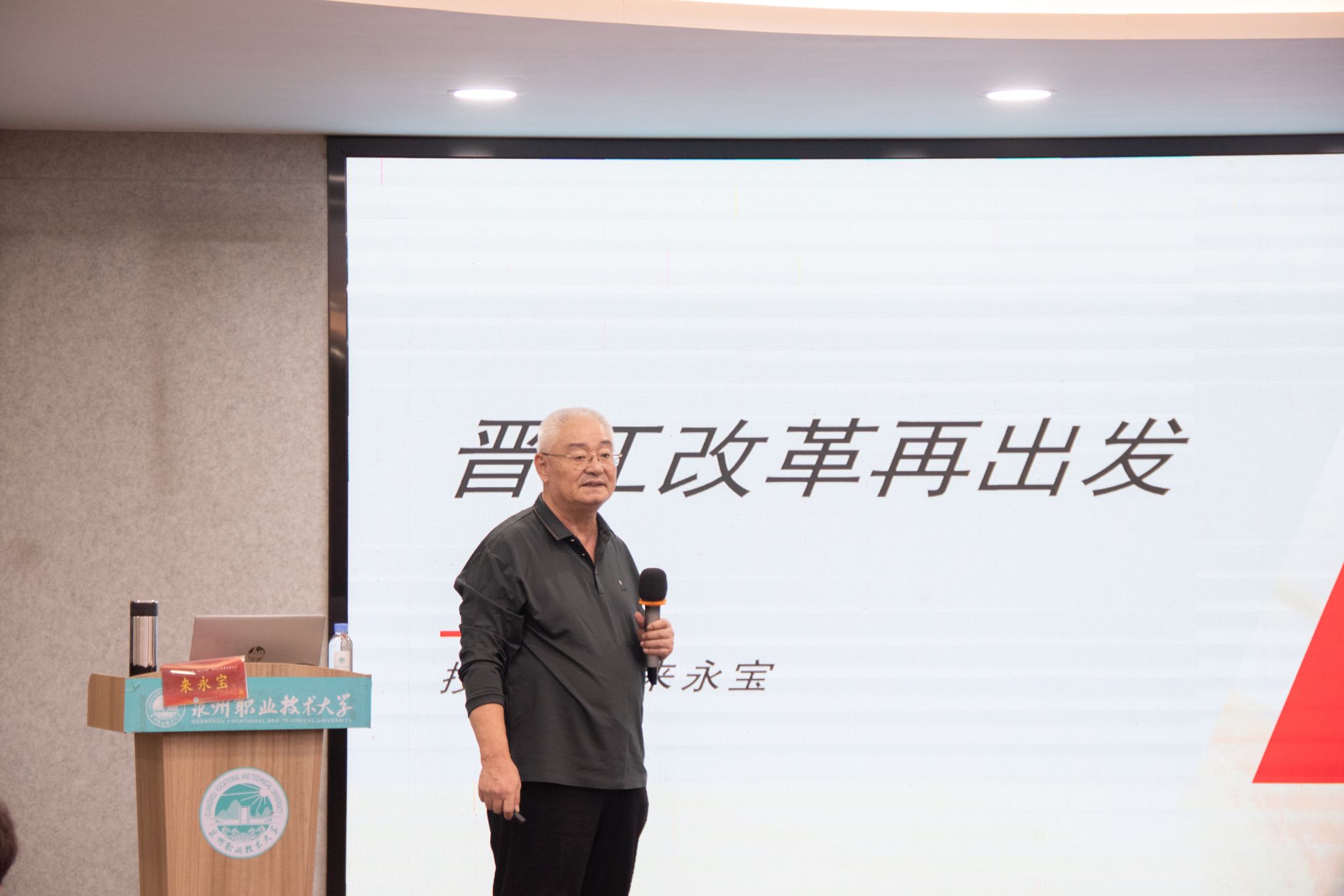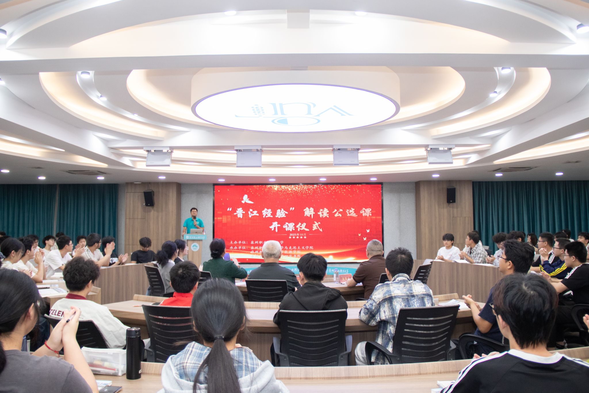 仪式结束后,课程学习活动正式开始。来永宝教授为第一讲作专题授课,系统解读"晋江经验"的科学内涵和实践价值。本次课程的开设是贯彻落实习近平总书记关于传承弘扬"晋江经验"重要指示精神的具体举措,将有效促进学校人才培养质量提升,为服务地方经济社会发展提供有力支撑。