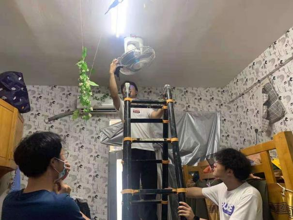 书院同学运用在课堂上所学的专业技能,在日常生活中,帮助身边的同学们解决日常中遇到的生活问题,例如维修空调、风扇、宿舍柜、门等。在帮助他们的过程中,使自己所学知识得到检验与运用,从而提升学生运用专业知识解决实际问题的能力。认真、细致的态度,也是书院“做事踏实”精神的体现。