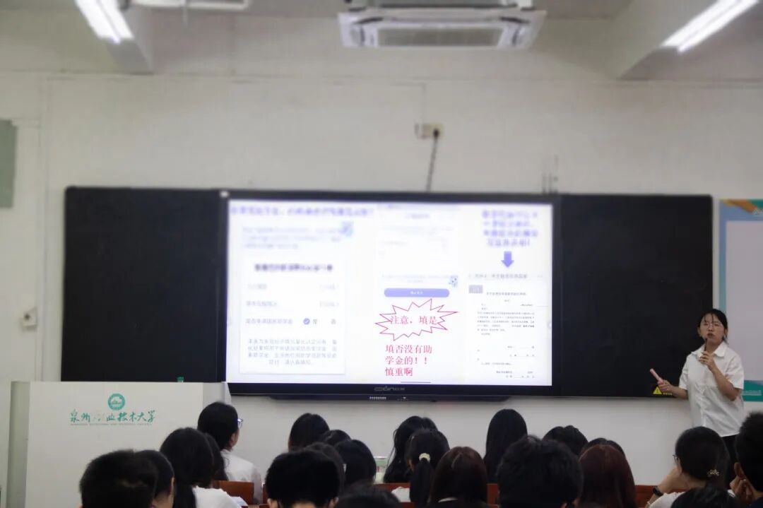 2025年10月11日,泉州职业技术大学四实书院于A206教室举办“同心助学,共筑未来”班级助学金宣讲会,书院各级学生参与,活动由四实书院学生资助工作室承办,旨在切实发挥助学金的帮扶作用,让四实书院学生精准了解政策内容、掌握申报要点,助力学生解决经济顾虑,全身心投入学习。