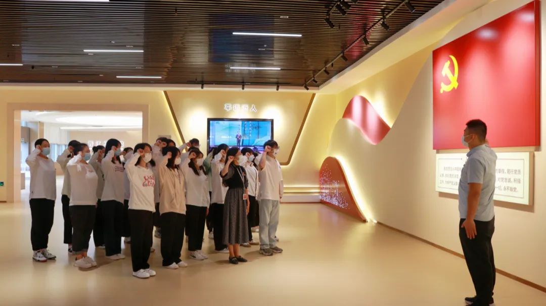 在参观展馆的最后,全体人员面向党旗重温入党誓词,庄严宣誓,铮铮誓言激励着师生党员们不忘初心使命,牢记使命担当。