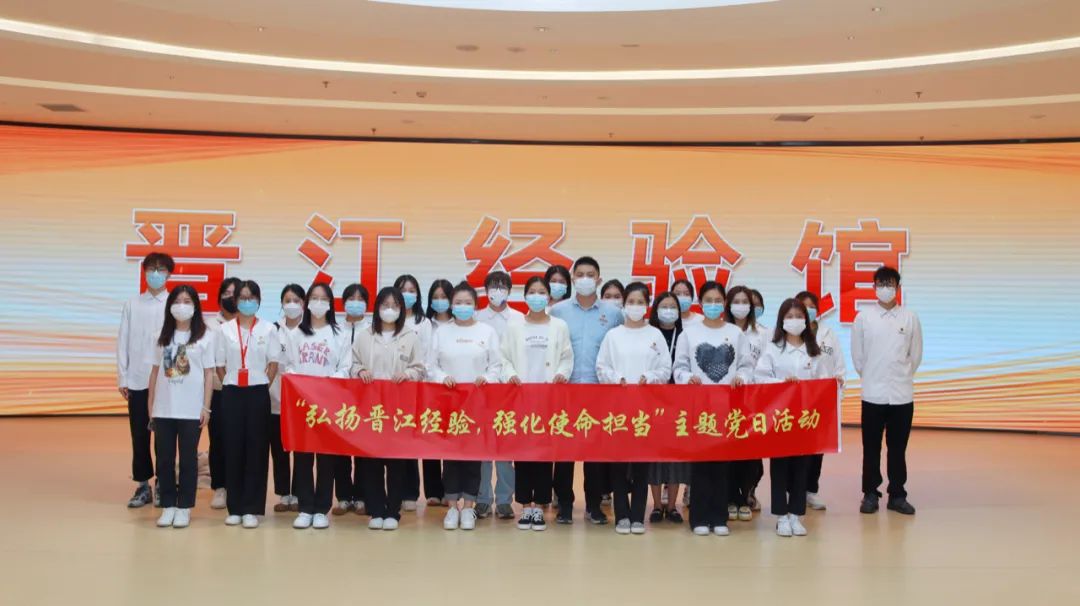 为了积极学习贯彻习近平总书记总结提炼的“六个始终坚持”和“处理好五大关系”的“晋江经验”, 深刻体会“晋江经验”的丰富内涵,加强学生党员的党性修养,迎接党的二十大的胜利召开,深入开展党史学习教育活动。2022年10月12日下午14点,三创书院第一、第二党支部组织学生党员前往晋江市展馆开展“弘扬晋江经验,强化使命担当”主题党日活动。