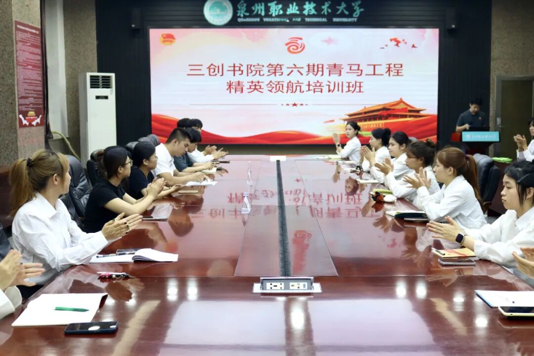 为深入学习宣传贯彻习近平新时代中国特色社会主义思想,进一步加强青年政治引领,为党组织培养和输送一批具有忠诚的政治品格、浓厚的家国情怀、扎实的理论功底和突出的能力素质的青年政治骨干。近日,三创书院在第一会议室举办了三创书院第六期青马工程精英领航培训班开班仪式。三创书院党总支书记兼院务主任李海洋、团委指导老师林杰祥、党务工作室指导老师陈旭铃、心理部指导老师王邹欣、自律会指导老师刘东毅出席了本次开班仪式。