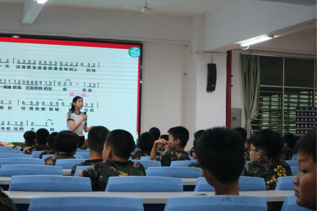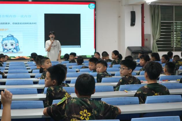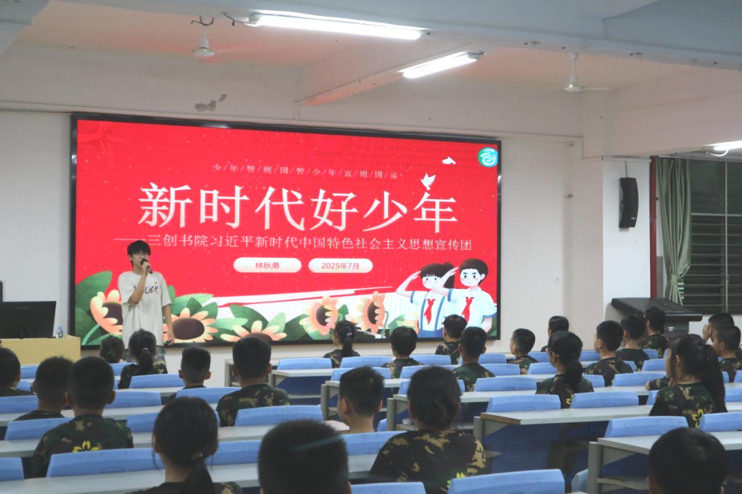 为深入学习贯彻习近平总书记关于少年儿童工作和青少年美育的重要指示批示精神,泉州职业技术大学三创书院习近平新时代中国特色社会主义思想宣传团走进“小荷”夏令营。实践团成员林秋勇同学以“新时代好少年”为题,为百余名营员带来了一场别开生面的思政微课,助力孩子们“扣好人生第一粒扣子”。麦辰昕同学则以《我爱你,中国》为主题,呈现了一堂“声”入人心的音乐思政微课,让爱国主义旋律深深浸润孩子们的童心。