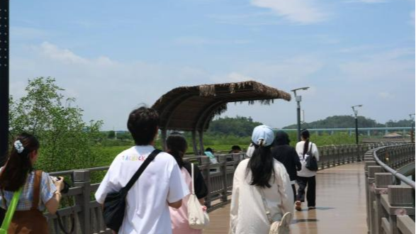 穿行木栈道,极目葱茏;俯瞰滩涂,鱼跃蟹行。实践团成员们深刻感受到:只有尊重自然、顺应自然、保护自然,才能实现人与自然和谐共生,才能让良好生态环境成为最普惠的民生福祉。