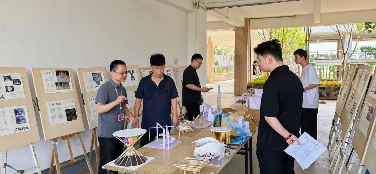 2025年6月26日,人居环境学院举行“焜煌杯”《建筑设计基础》课程“立体构成”十佳作业评选活动。这是“十佳作业”评选活动的第二届,却是得到企业资助与冠名的第一次。本次活动由学院青年教师梁炳林主持,陈淼淼、朱睿、柳升辉、叶坤杰等教师共同参与。评委阵容综合性强,由学院书记兼副院长张艺能、建筑设计专业带头人关瑞明和焜煌设计事务所创始人兼主案设计师梁立展组成。分别扮演学院领导、教学名师和企业专家角色,分别代表景观设计、建筑设计和室内设计专业领域。