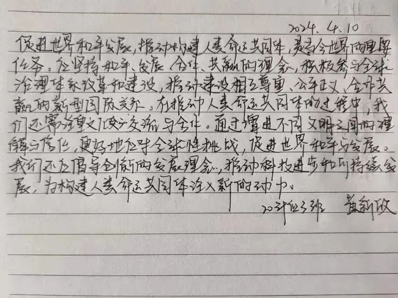 通过学习,学生党员们进一步理解和认识促进世界和平与发展以及推动构建人类命运共同体的紧迫性,更好地理解了不同文化、价值观念和传统,促进文明交流互鉴,从而为推动人类共同发展贡献自己的力量。此次理论会的学习,使同志们更加领悟了学习该专题有助于激发个人的社会责任感和使命感,培养全球视野,提升国际意识,进而为推动世界和平与发展提供不竭动力。