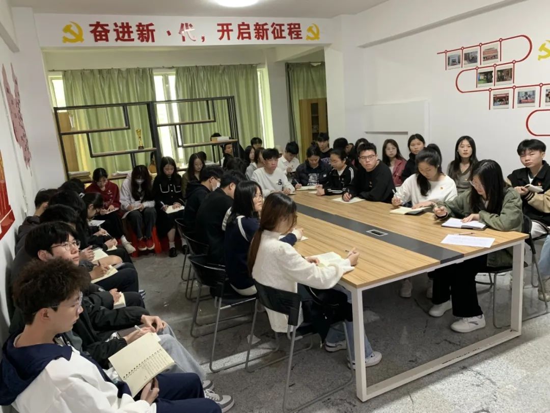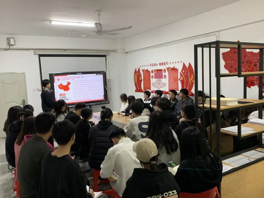 学思践悟党的二十大精神,凝心聚力奋进新征程。为使学生党员深刻认识到坚决维护国家主权和领土完整的重要性,深入理解维护国家利益的意义,促进自我提升,从而推动党的建设和事业发展。2024年3月27日12:30,四实书院第一、第二党支部于4170召开2023-2024学年第七次理论学习会,以“坚持和完善‘一国两制’,推进祖国统一”为主题开展专题交流,集中学习《习近平新时代中国特色社会主义思想摘篇》内容,四实书院第一、第二党支部学生党员们参会学习,本次会议由四实书院第二支部学生党员徐小龙主持宣讲。