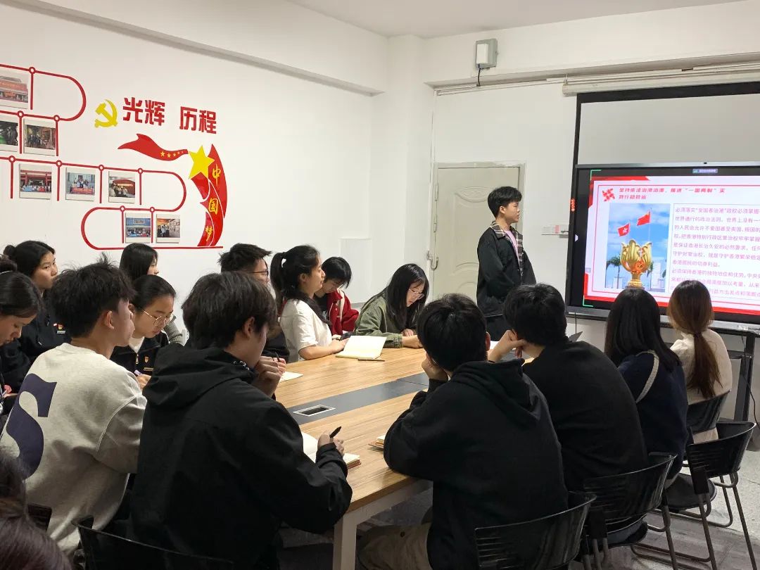 在本次会议上,四实书院第二党支部学生党员徐小龙从“一国两制”是香港、澳门回归后保持长期繁荣稳定的最佳制度安排等多方面进行宣讲。会议宣讲应当逻辑严谨,思维缜密,以浅显易懂的方式阐述理论知识,使听众易于理解,并激发他们的思考。