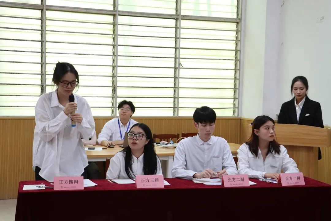 第四场,23级软工专升本1班和23级信管1班围绕“短视频盛行提升/降低了当代人的认知能力”展开辩论。