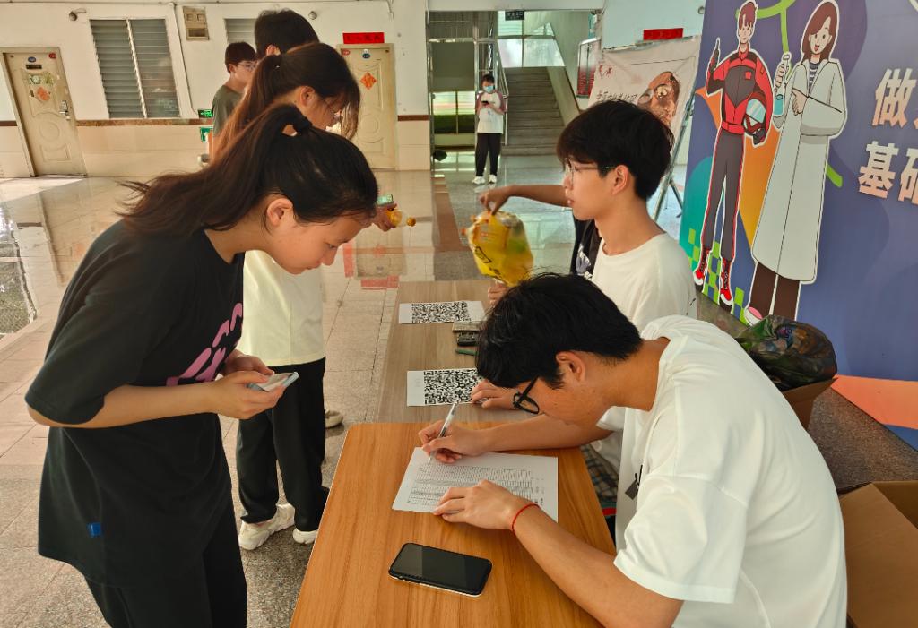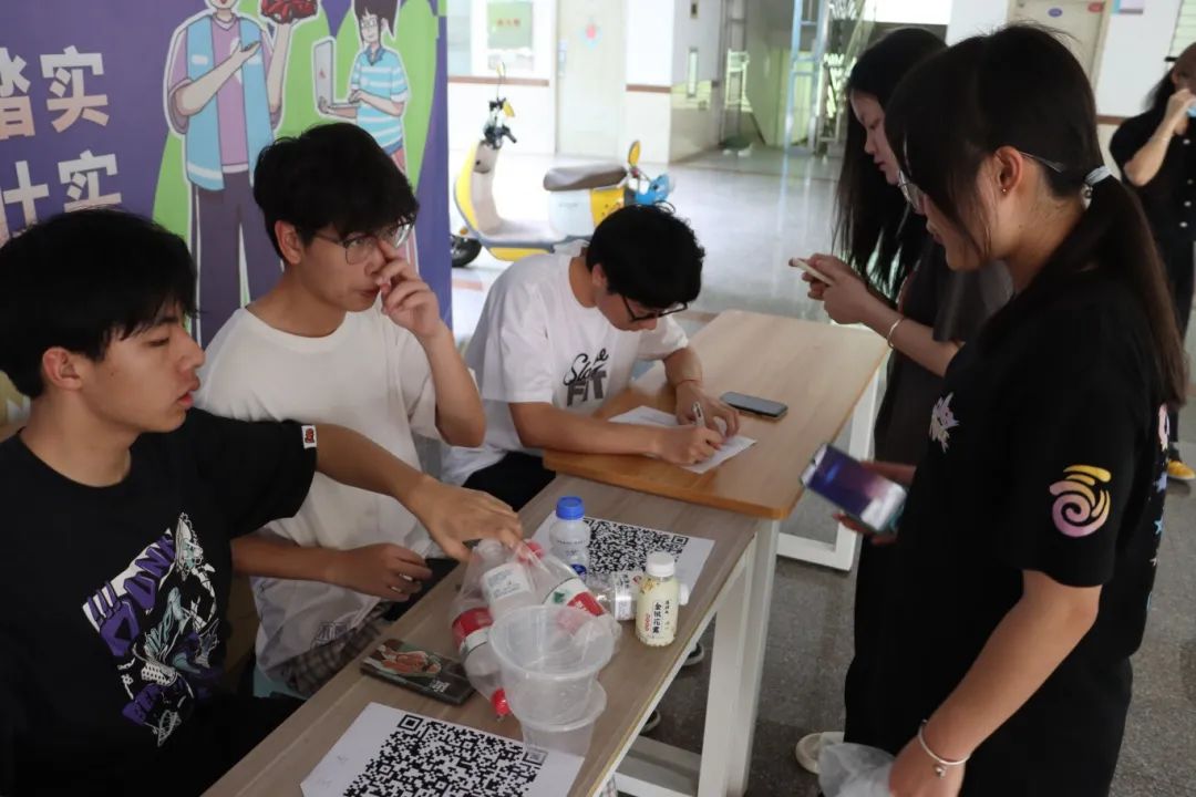 活动当天,同学们积极将收集到的塑料制品转交至工作人员处,工作人员们耐心地接收每一件塑料制品,仔细地记录下来。随着同学们的踊跃参与,活动现场很快就堆满了各种各样的塑料制品,有塑料瓶、瓶盖、奶茶盖等。