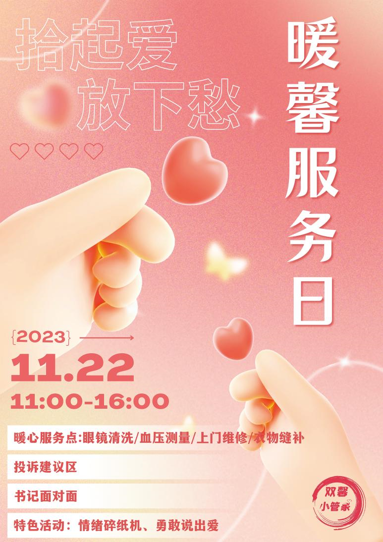 为了营造书院良好的学习和课外活动氛围,丰富书院生活,双馨书院楼层管理委员会将在11月22日(周三)上午的11点至下午16点开展暖馨服务日。