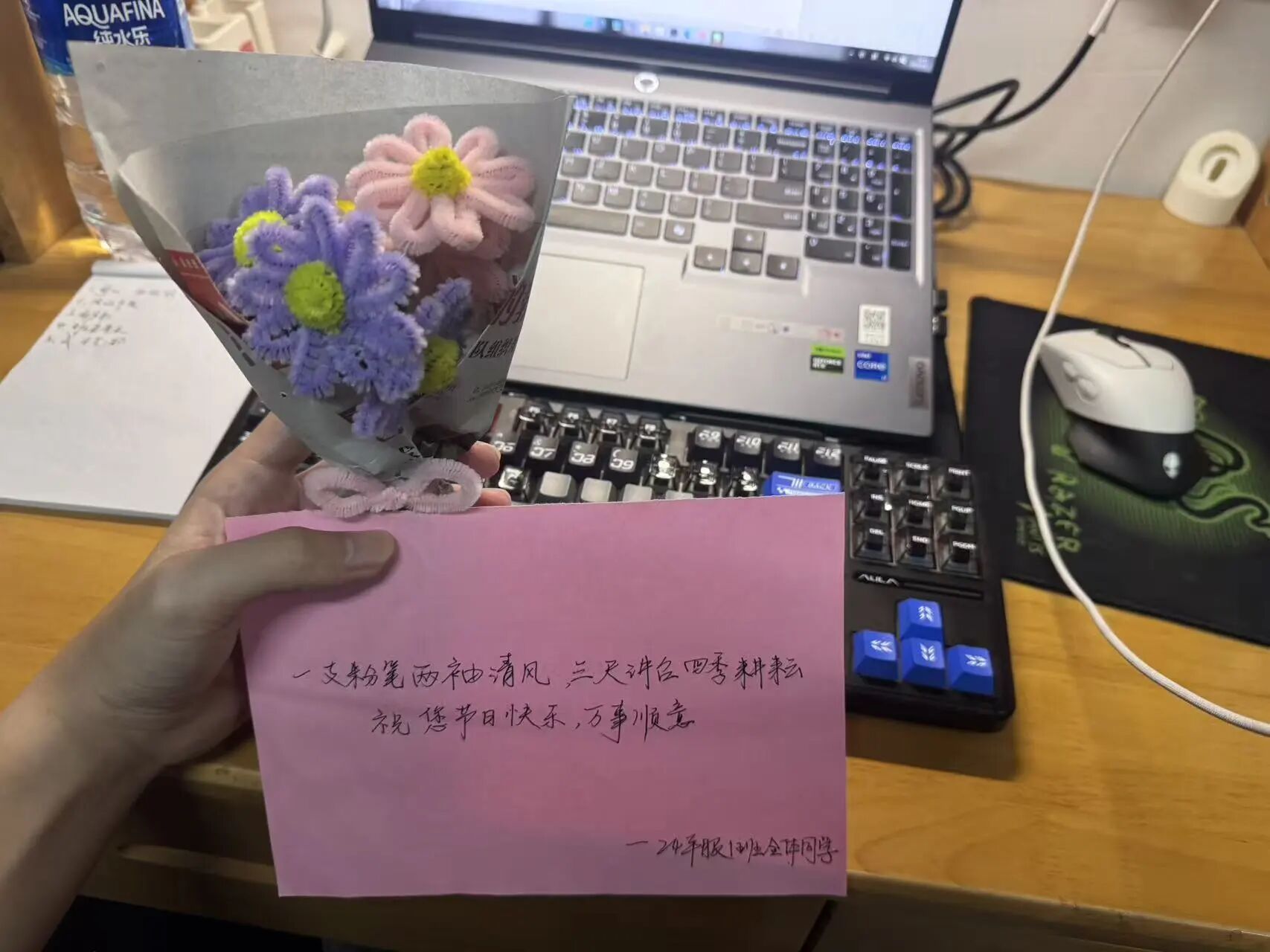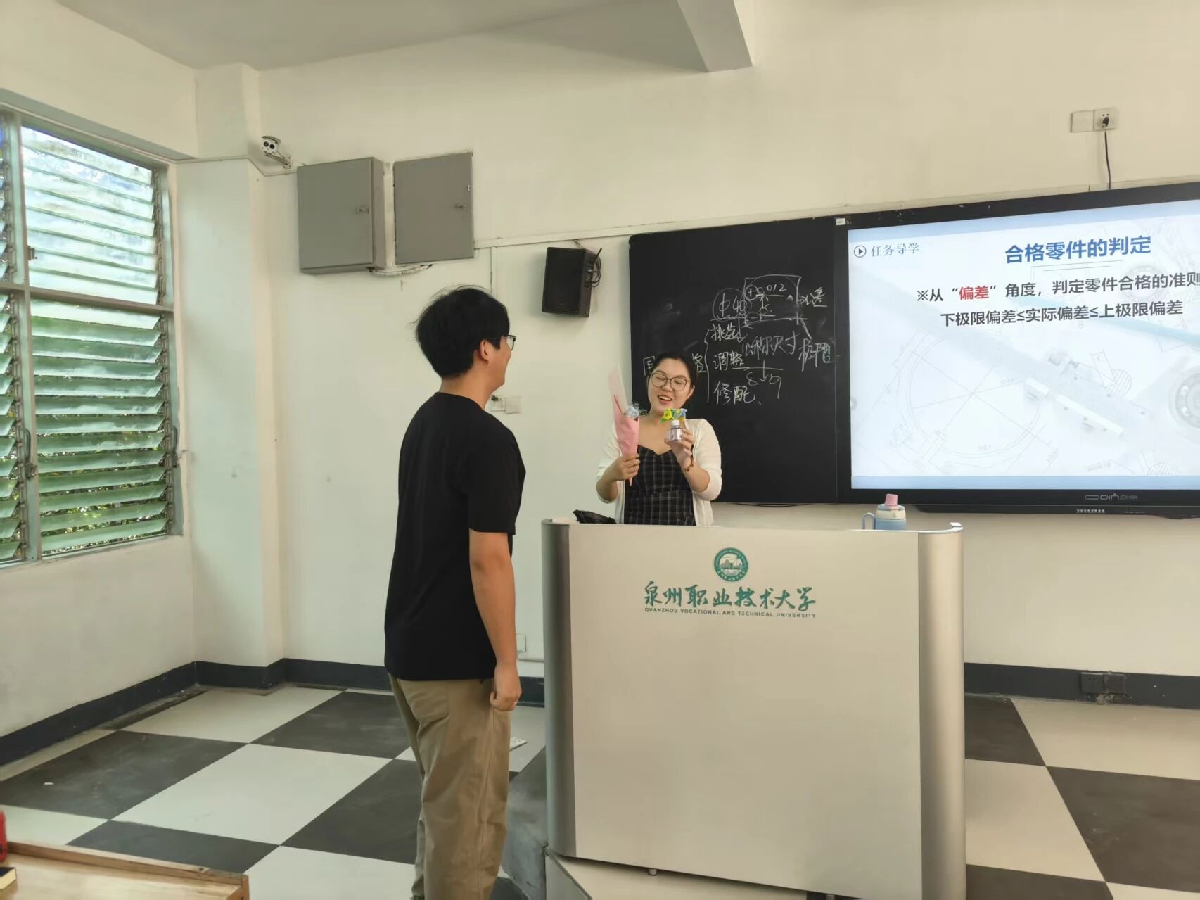 没有华丽的辞藻,只有捧着花时紧张又认真的眼神;没有复杂的仪式,只愿这抹鲜活色彩,能为您满是板书的课堂添一份甜。您总把知识化作春风,今天,我们想让这份美好,也落在您的心头。