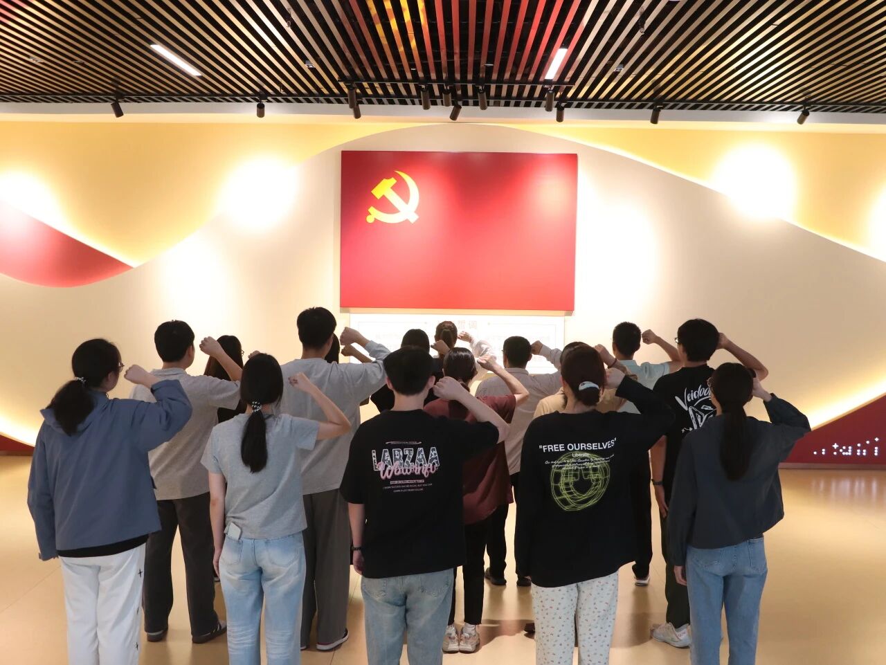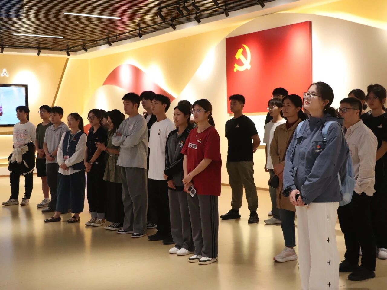 参观结束后,全体师生党员面向鲜红党旗庄严肃立,庄严举行入党宣誓仪式。仪式由双馨书院党总支书记兼院务主任罗永珍同志领誓,阵阵铿锵有力的誓言回荡在场馆内,不仅是对入党初心的重温,更是对使命担当的再次承诺。入党积极分子在旁全程见证宣誓过程,深受感染与激励,进一步坚定了向党组织靠拢、为党和人民事业奋斗的决心。