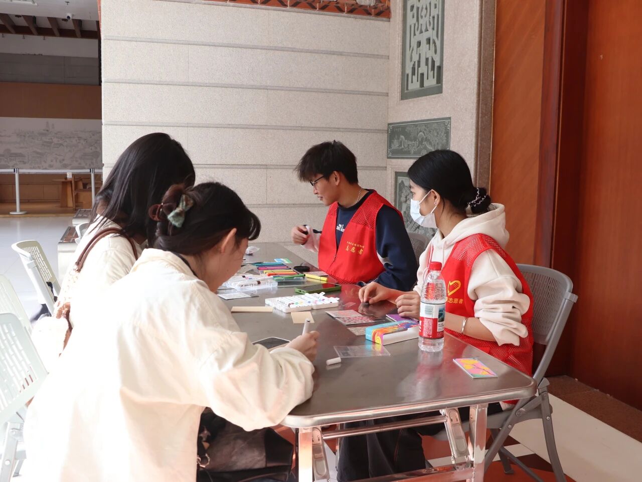 上午,闽台缘博物馆三楼互动区的摊位前已聚满游客,整个摊位聚焦“冰箱贴手绘”,简洁摆放着两大制作物料:一侧是大小一致的空白木板,多色彩的丙烯画笔、和排列整齐的磁吸贴片,满足不同绘画需求;另一侧则陈列着一些志愿者们的样品。