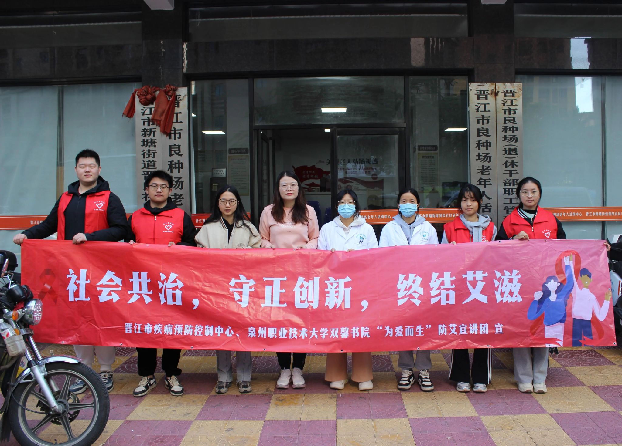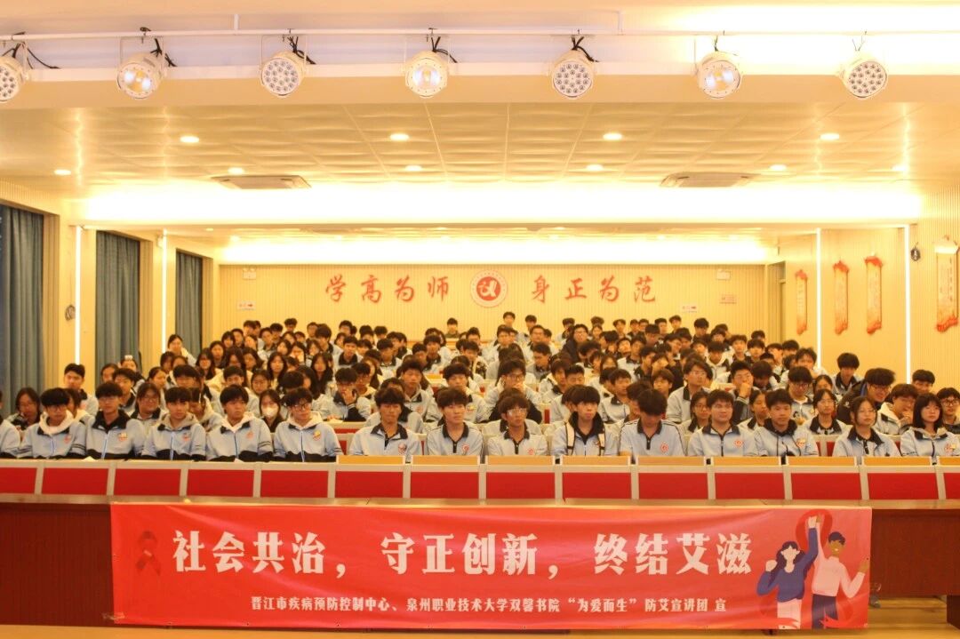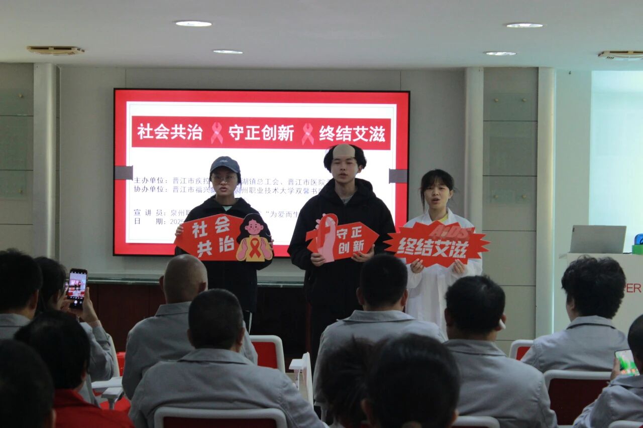 党建引领,健康同行。晋江市疾控中心与泉州职业技术大学双馨书院联合组建“为爱而生”防艾宣讲团,由15名大学生志愿者组成。团队以“大健康教育”理念为核心,以“进社区、进企业、进校园”为主线,开展防艾宣传,通过情景剧、主题活动和知识竞答等形式,助力“科普晋江”建设。2025年累计开展10余场大型宣讲,直接覆盖超1w人,营造了“人人知艾、人人防艾”的良好社会氛围。