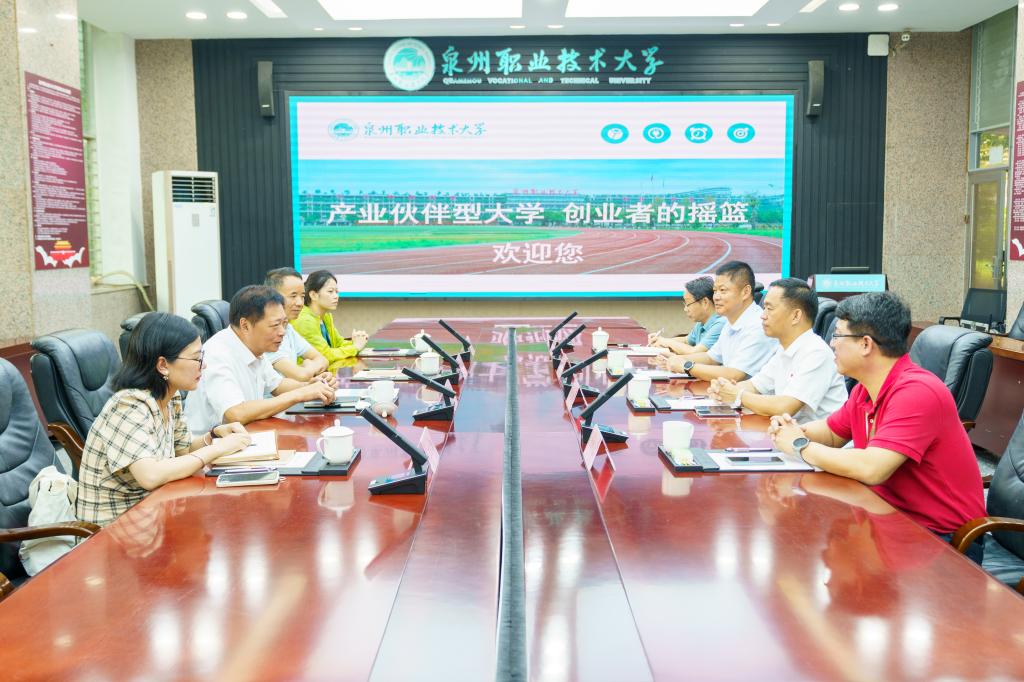 座谈期间,庄伟廉介绍了泉州海洋职业学院的基本情况及他此前到学校调研的印象,对我校升本后办学条件的提升和在产教融合、科教融汇领域取得的成效大加赞扬。此后,双方就升本工作推进、本科学位评估、高层次人才引进、省级科研平台建设、校企合作经验等方面进行深入交流。最后,双方就未来深化两校交流与合作达成共识。泉州海洋职业学院升本办负责人及有关同志,我校校长办公室、质量评估处等单位负责人参加考察和座谈。