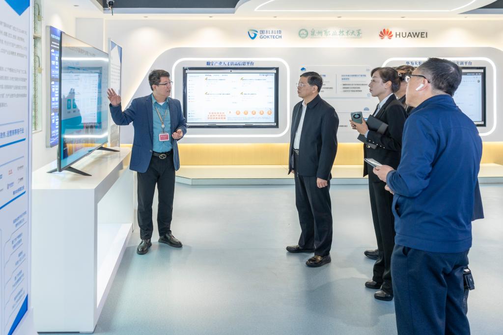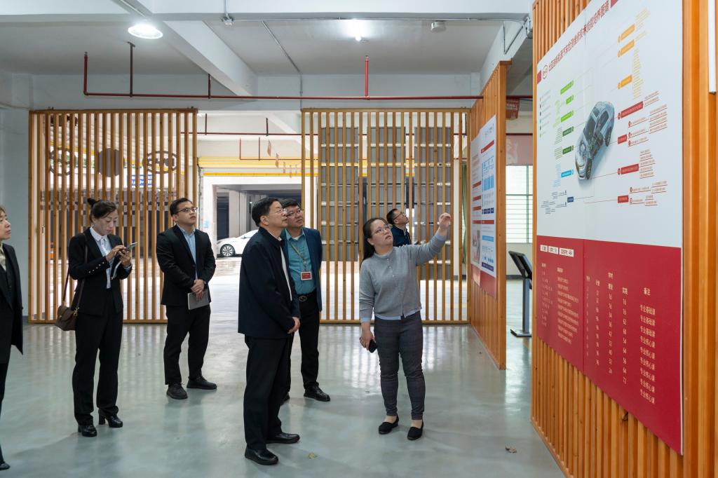 钱建华一行先后考察了生态校园沙盘、校史馆、国科数字产业学院、清洁能源福建省应用技术协同创新中心、行云新能源汽车产业学院、安踏电商服务产业学院、艺术工坊等,详细了解学校开展职业本科试点情况和产业学院建设模式。
