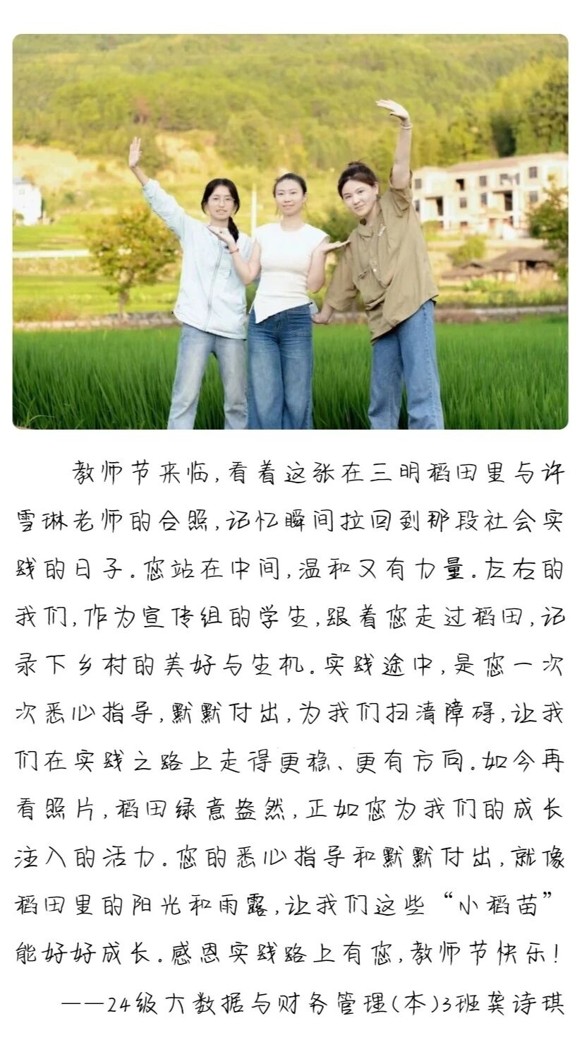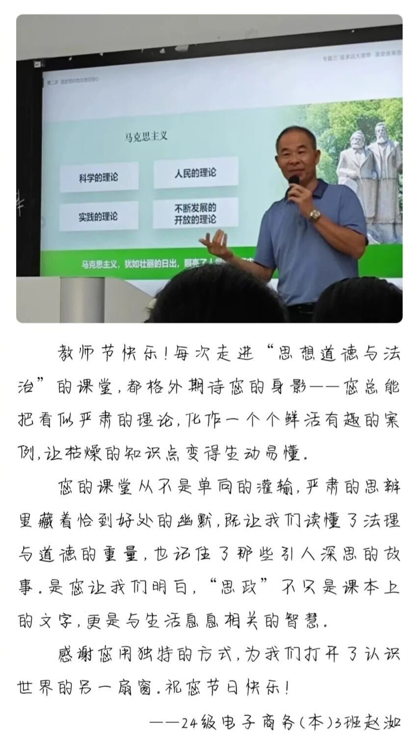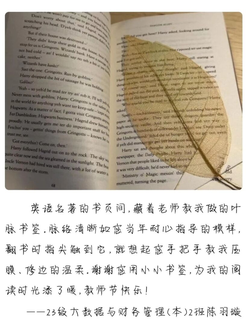 第41个教师节来临之际,“师泽润心,拾光寄恩——我的感恩礼匣”线上征集活动温情开启。活动设置“祝福礼匣”“记忆礼匣”“绘画礼匣”“帧存礼匣”四大板块,学子通过文字倾诉师恩、旧物承载回忆、画作传递心意、影像定格温暖:有人以老师手教制作的叶脉书签回忆课堂外的温柔,有人用卡通画定格教授耐心解答问题的笑容。这些真挚投稿不仅搭建起师生情感沟通的桥梁,更在表达与分享中涵养学子感恩品格,为成长注入温暖力量,让校园尊师重教的氛围愈发浓厚。