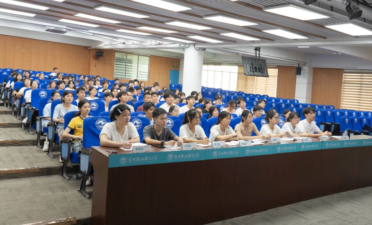“在晋江边陲小镇的石头房中,一份跨越三十余载的职教蓝图就此擘画。”杨颖聪老师以校史为脉络,系统梳理了泉州职业技术大学从1986年晋江摩托车培训学校起步,到2019年跻身全国首批本科层次职业教育试点高校的奋进征程。他着重强调,建校39年来,学校始终坚守“奉献社会”的初心与“为民谋利”的宗旨,凝聚起“师生爱校如家”的深厚情感,更将“学习知识技能,更好服务社会”的理念融入血脉、代代传承。