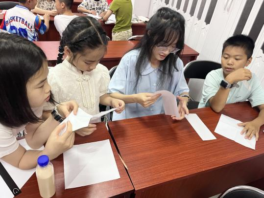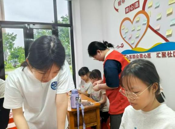 除了课业辅导,我还和伙伴们打造了“趣味课堂”:用小苏打与醋的反应让孩子们惊呼“像魔法”,靠脑筋急转弯让课堂笑声不断;课余时教他们剪窗花、做指南针,看着孩子们握着自己折的纸船、拼的指南针雀跃不已,我忽然明白,志愿服务不只是知识的传递,更是用陪伴拉近心与心的距离。
