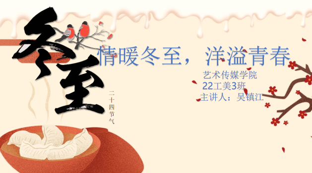 为了让同学们了解中华民族传统节日内涵,弘扬优秀传统文化,一善书院2022级全体同学于2023年12月22日开展线下“情暖冬至,洋溢青春”为主题的班会,让同学们了解冬至节气,感受中华优秀传统文化的魅力。