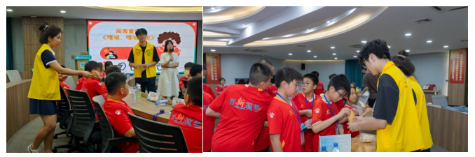 在闽南歌谣课堂,志愿者配合苏达娜老师创新的“方言“游戏,让孩子们在笑声中掌握“剪刀石头布“经典童谣;南音体验课上,志愿者与非遗传承人大师配合,用可视化图谱拆解千年雅乐的发声技巧。更令人动容的是,志愿者们提前学习基础闽南语,确保能与听不懂普通话的低龄营员顺畅沟通——这种“双向奔赴“的努力,让文化传承有了温度。