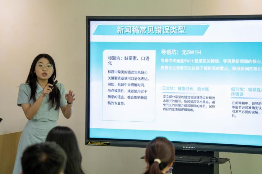 本次课程旨在提升学生骨干的新闻稿写作能力、强化其对公文格式规范的掌握。张紫怡老师围绕核心内容展开详细讲解,既涵盖新闻稿的写作技巧、结构搭建与语言表达,也包含公文的字体排版、标题层级及落款格式,同时还阐述了新闻稿与公文写作在信息传播、工作推进中的重要性,强调二者对高效开展工作的支撑作用。授课中,张老师结合大量实际案例,深入浅出地分析各类问题稿件,让学员更直观地掌握写作要点与避坑方法,不仅有效提升了大家的新闻稿撰写技能与公文处理能力,更帮助学员明确今后如何规范、高效地撰写新闻稿及各类公文。