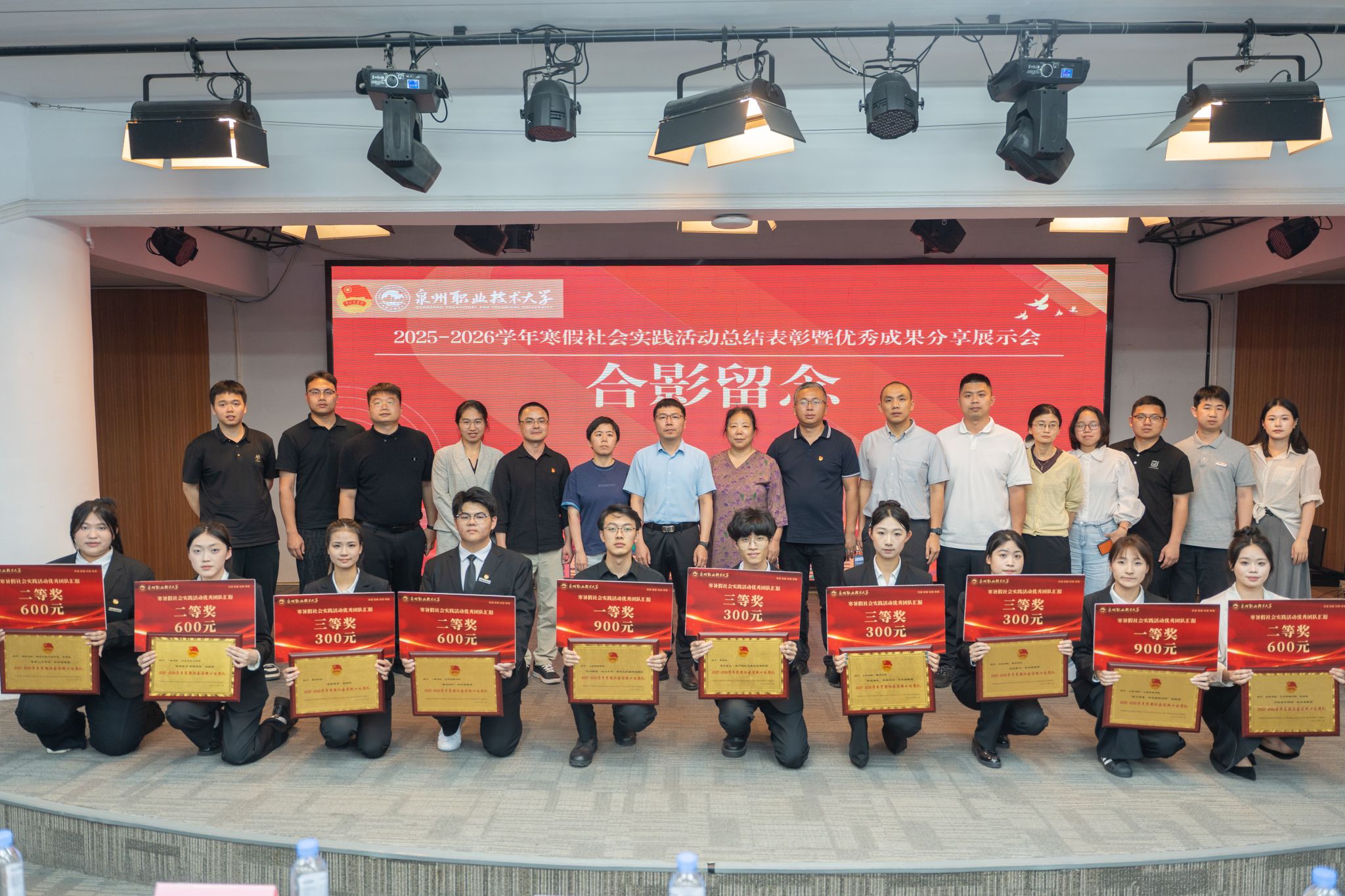 4月15日,泉州职业技术大学2025-2026学年寒假社会实践总结表彰暨优秀成果分享展示会在A633报告厅举行。校党委副书记、副校长蔡金佩出席活动,晋江团市委二级主任科员、组织部部长李婷婷博士与学校党委组织部、教务处、学工处、马克思主义学院相关负责人担任评委,各书院、学院领导,各实践团队指导教师及学生代表共同参加。校团委副书记曾子石系统回顾了本次寒假社会实践情况。实践以“追寻领袖足迹 激发文化创新创造活力”为主...